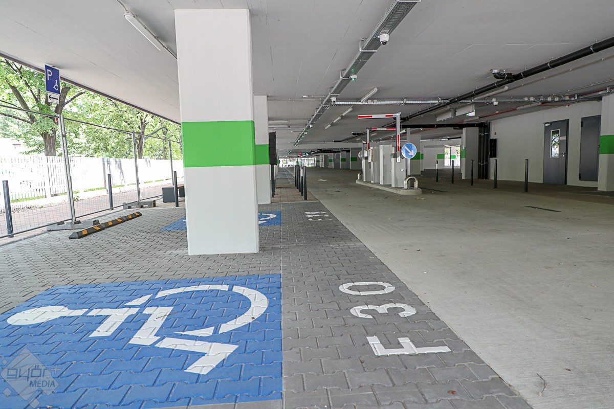 A parkolólemezen – melyet a West Hungaria Bau épített – összesen 359 autó fér el. Így öszszesen, minden férőhelyet beleszámítva 601 kocsival tudnak parkolni a kórházba érkezők. Ez 180-nal több, mint amennyi régebben volt. A beruházást a város önkormányzata a harmadik, vagyis a legolcsóbb övezetbe sorolta. Ez azt jelenti, hogy használata nappal és éjszaka is óránként 100 forintba kerül.
