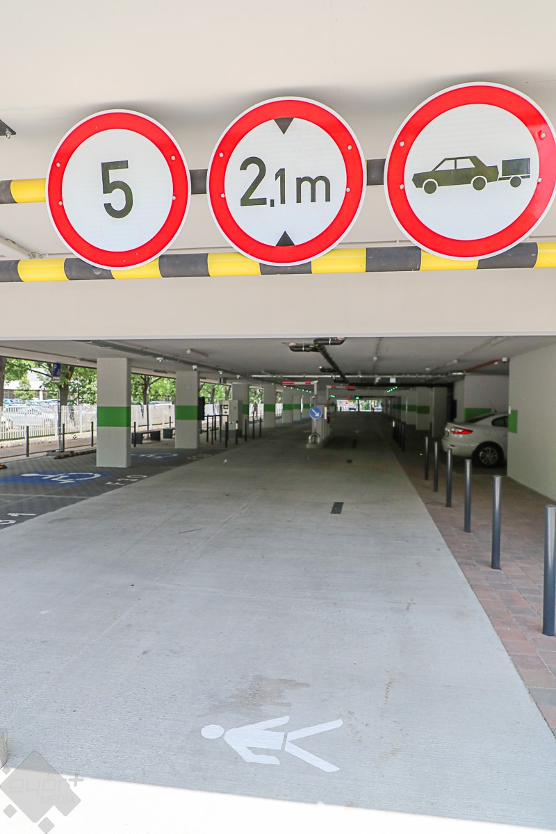 Az épületben két lépcsőházat alakítottak ki, a hozzá tartozó liftekkel. A mosdókat a megváltott parkolójeggyel, valamint aprópénzzel is lehet használni. A parkoló minden helyisége, valamint a fel- és lehajtó rámpák is fűthetőek lesznek a téli időben is biztonságos közlekedés érdekében. A tetőtérben napelemeket szereltek fel. Kialakítottak tíz elektromos töltőállomást, ezek számát igény szerint növelni tudják. A parkolók mérete szabvány szerinti, illetve szélességük valamivel még nagyobb is.