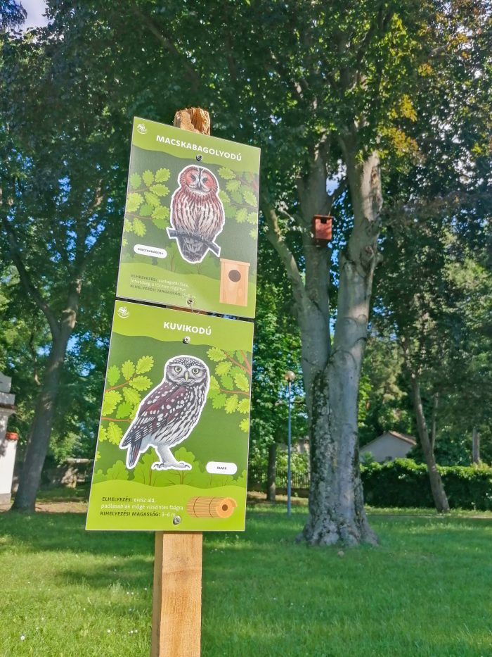 Szintén a pályázatnak köszönhetően tudtunk kialakítani egy madárvédelmi tanösvényt a Bezerédj- kastély előtti parkban. Ennek segítségével az odalátogatók megismerhetik a különböző méretű odúkat. A tájékoztató táblák információkat nyújtanak a macskabagoly-odúról, a verébtelepről és az etetőkről is. Ugyancsak Ménfőcsanakon két fecskelakótelepet is elhelyeztünk a hasznos madarak védelme érdekében. A munkát a Győr-Szol Zrt. munkatársai végezték el. Az érdeklődők mindezeken túl a rovarhotellel is megismerkedhetnek, és kedvet kaphatnak, hogy annak mintájára akár otthon is készítsenek ilyet gyermekeik bevonásával. Bízunk benne, hogy a madárvédelmi program keretén belül megvalósult projektelemekkel a lakosság aktívabban bekapcsolódik természeti értékeink védelmébe” – mondta Herman Etelka.