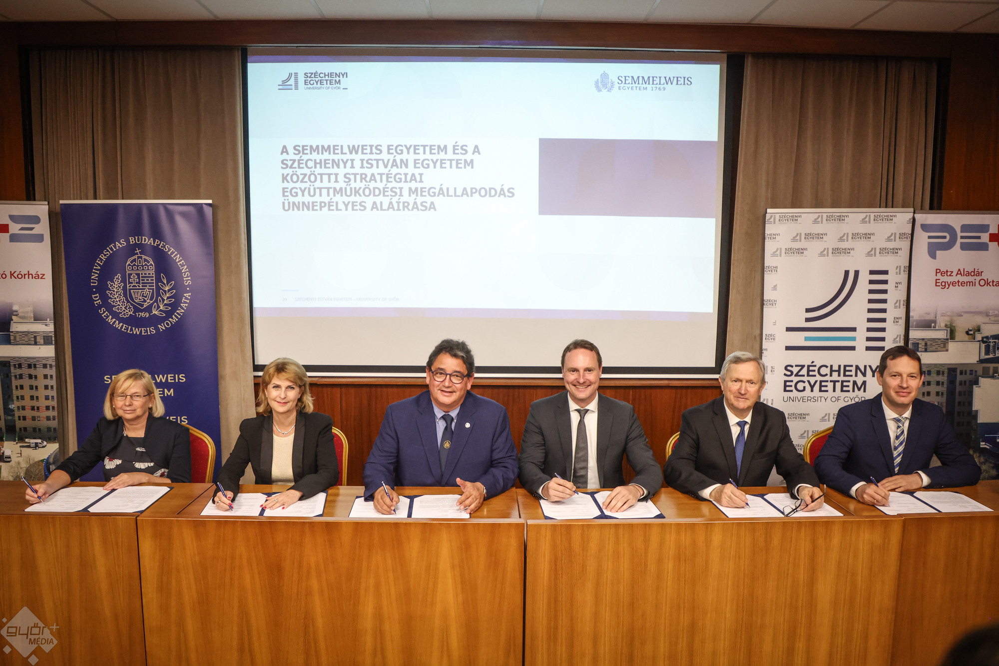 Az egészségügyi kutatásban, fejlesztésben, oktatásban és a gyógyításban minőségi távlatot jelent a győri Széchenyi Egyetem, a Semmelweis Egyetem, és a Petz Aladár Egyetemi Kórház szombaton aláírt, széles körű együttműködése.