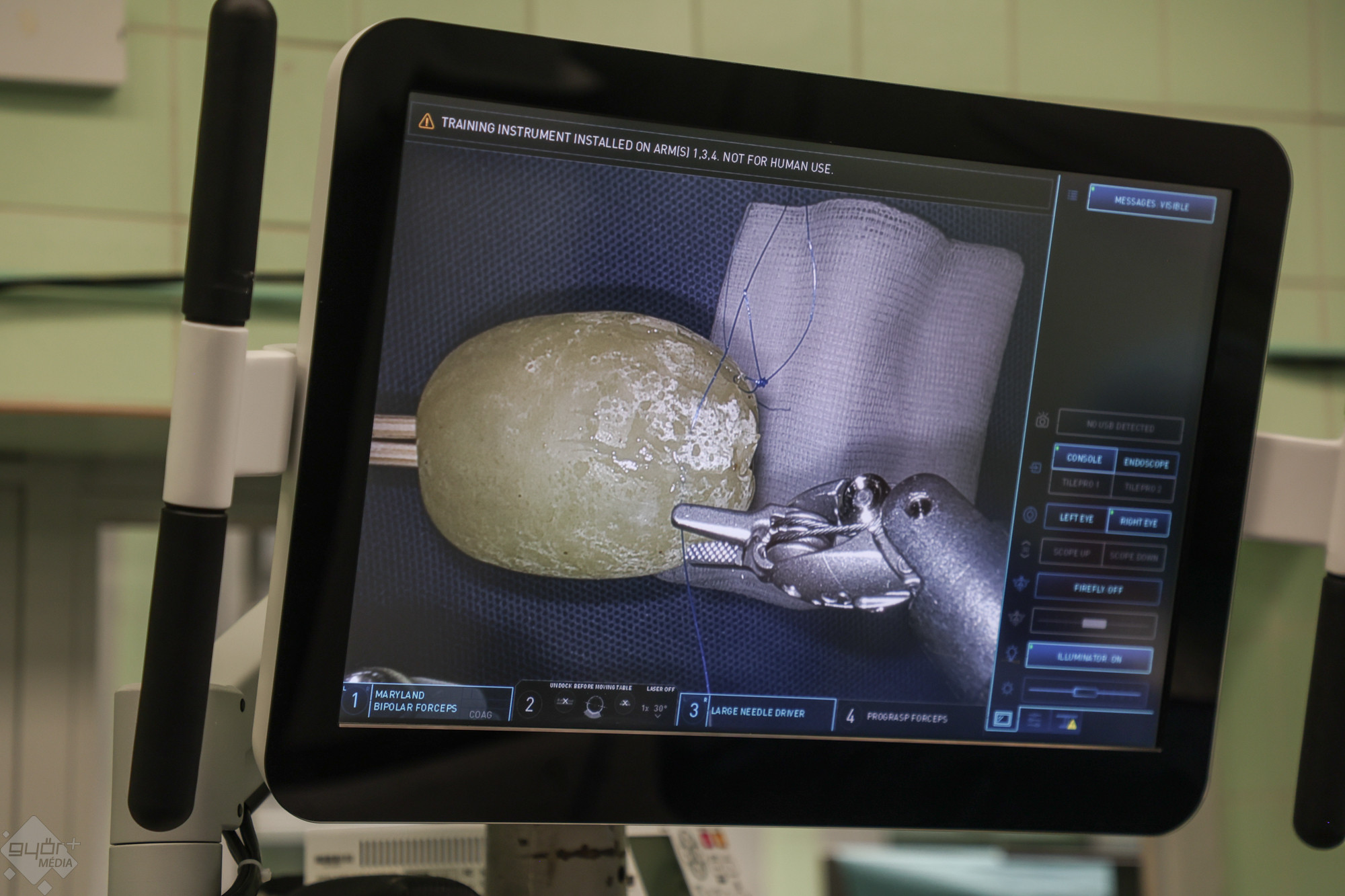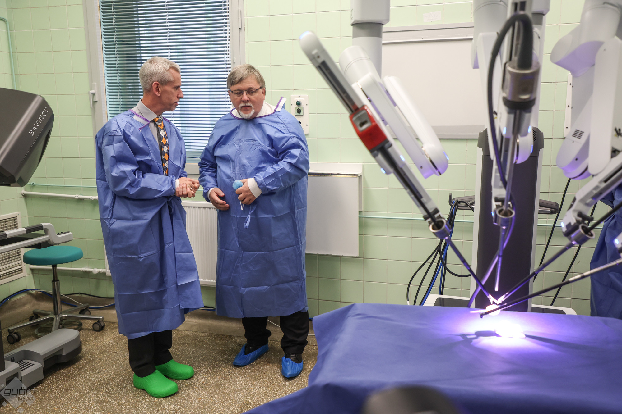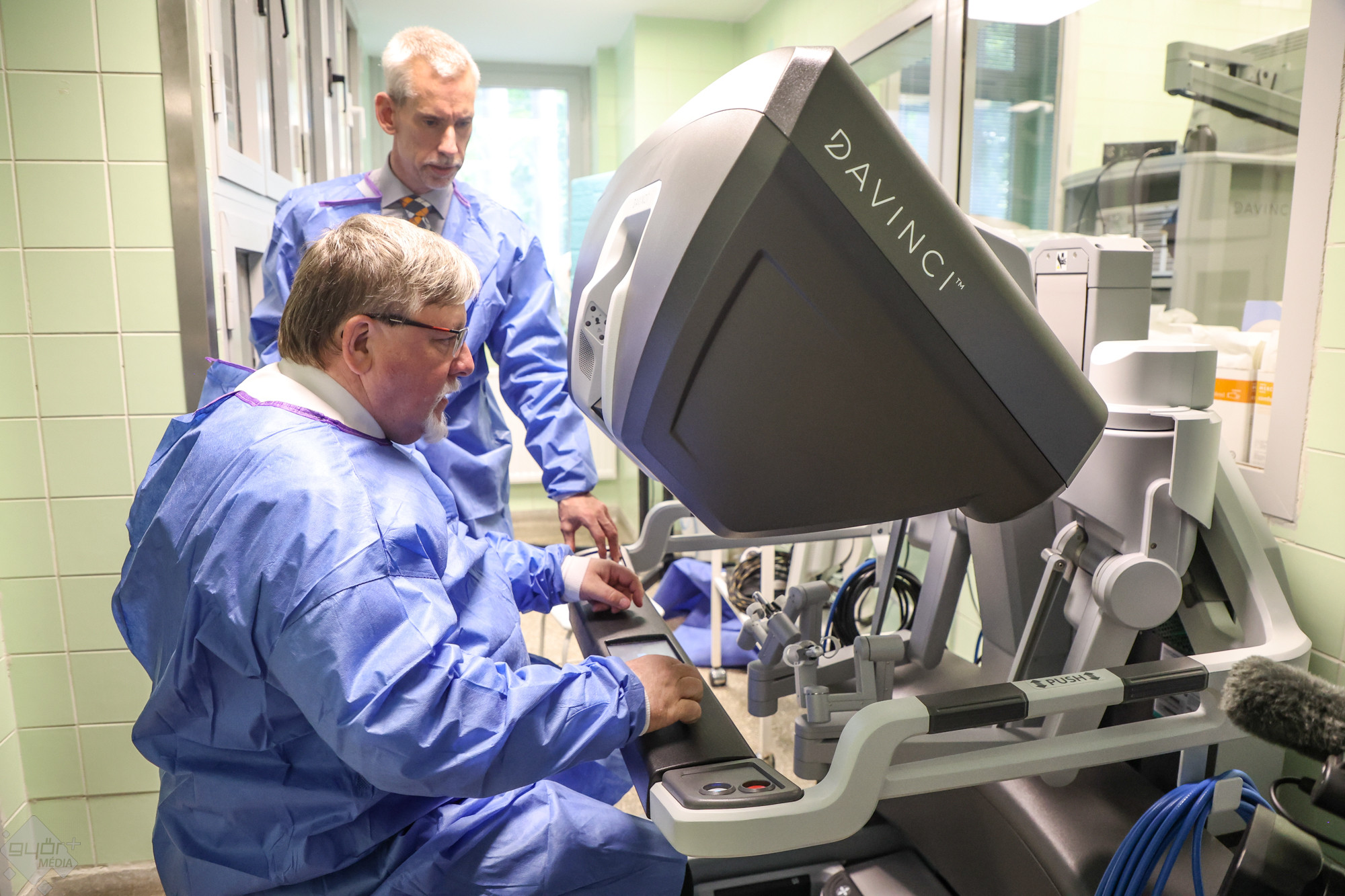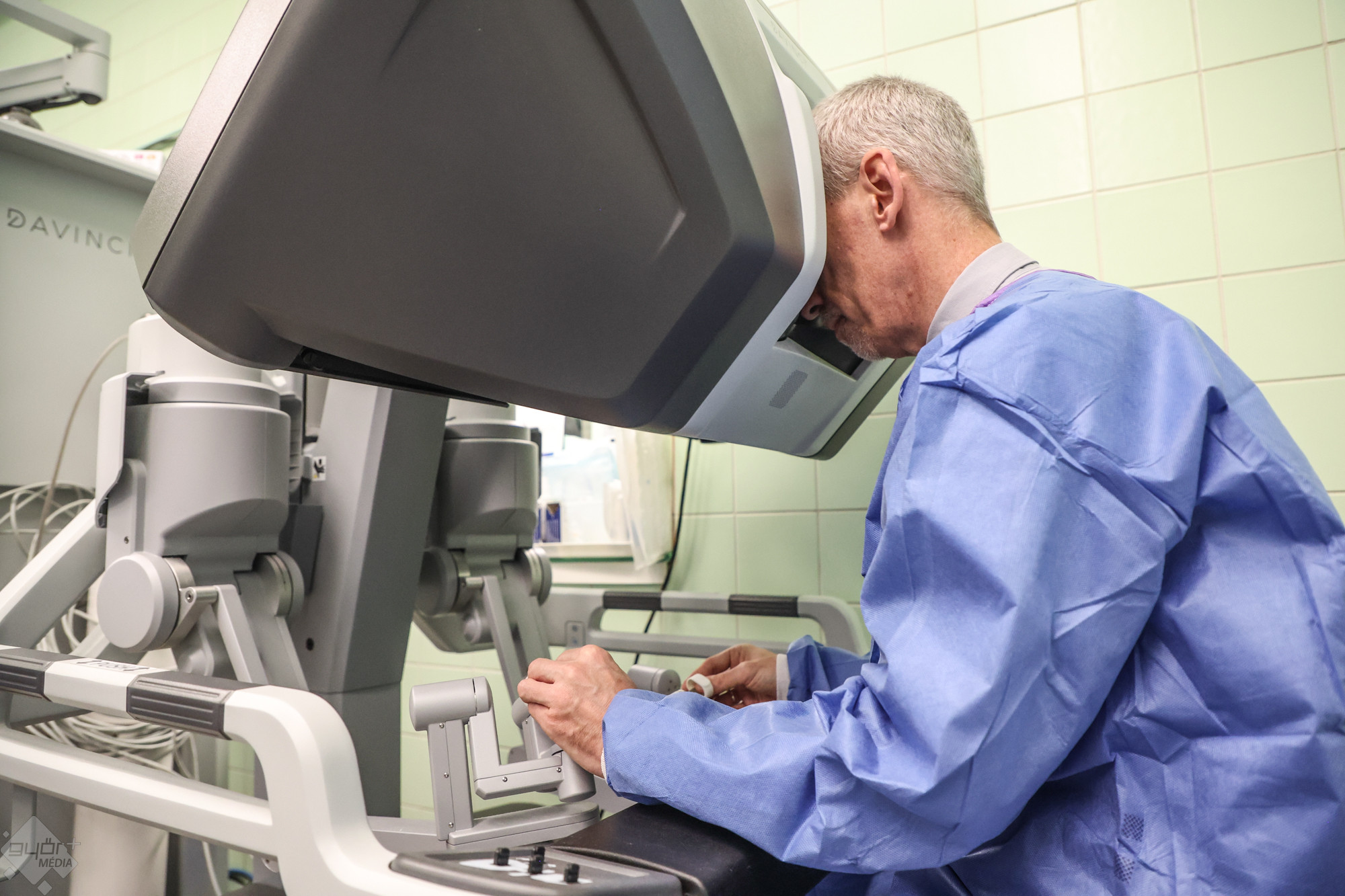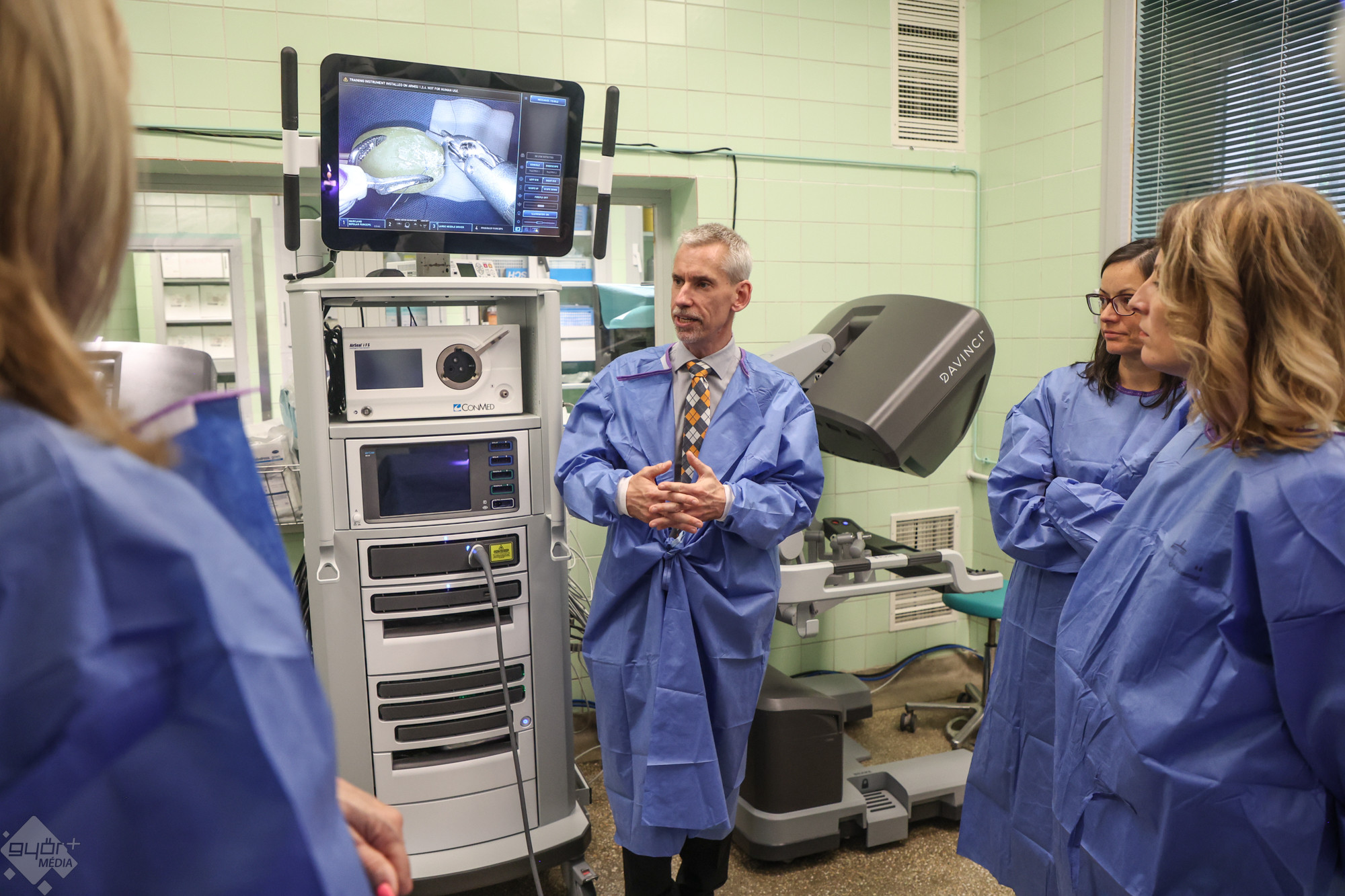 Dr. Szepesváry Zsolt, a kórház urológiai osztályának vezető főorvosa, az egyetem dékánhelyettese mutatta be a DaVinci robotrendszert Hangsúlyozta: nem autonóm berendezésről van szó, csak azt csinálja, amit a kabinban ülő, s ott a műtéti területet három dimenzióban látó orvos karok és pedálok mozgatásával utasításba ad neki. Ez a technológia olyan műtétek elvégzésére is alkalmas, amelyeket korábban nem lehetett elvégezni.