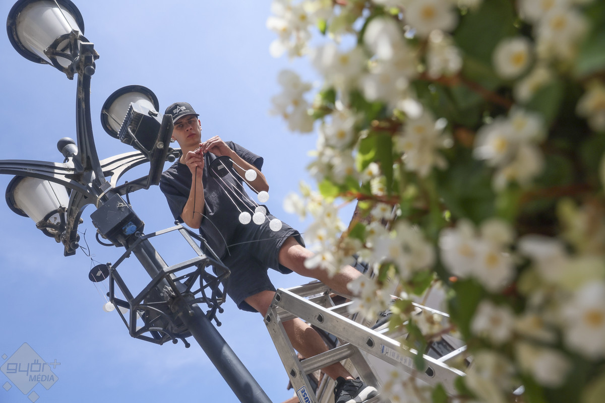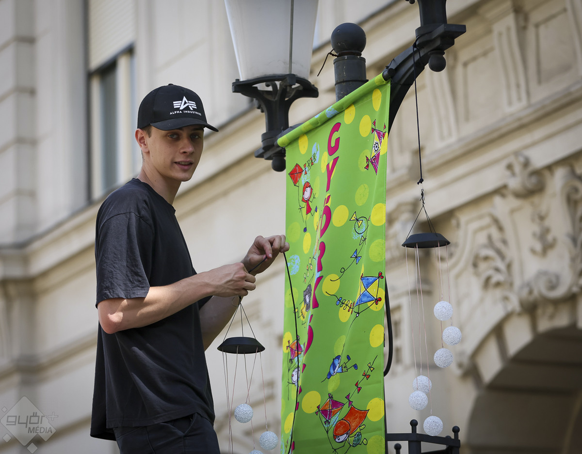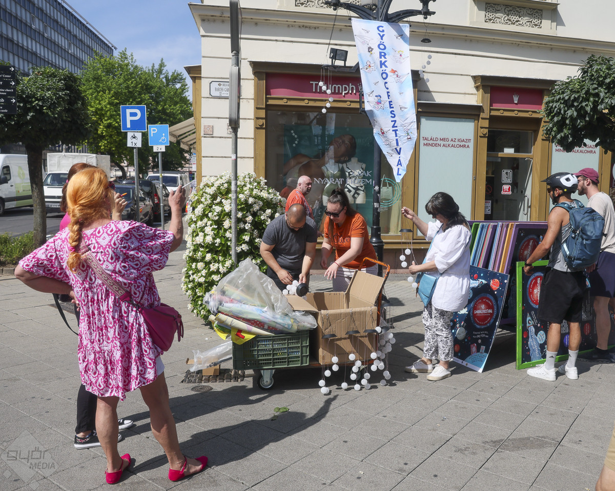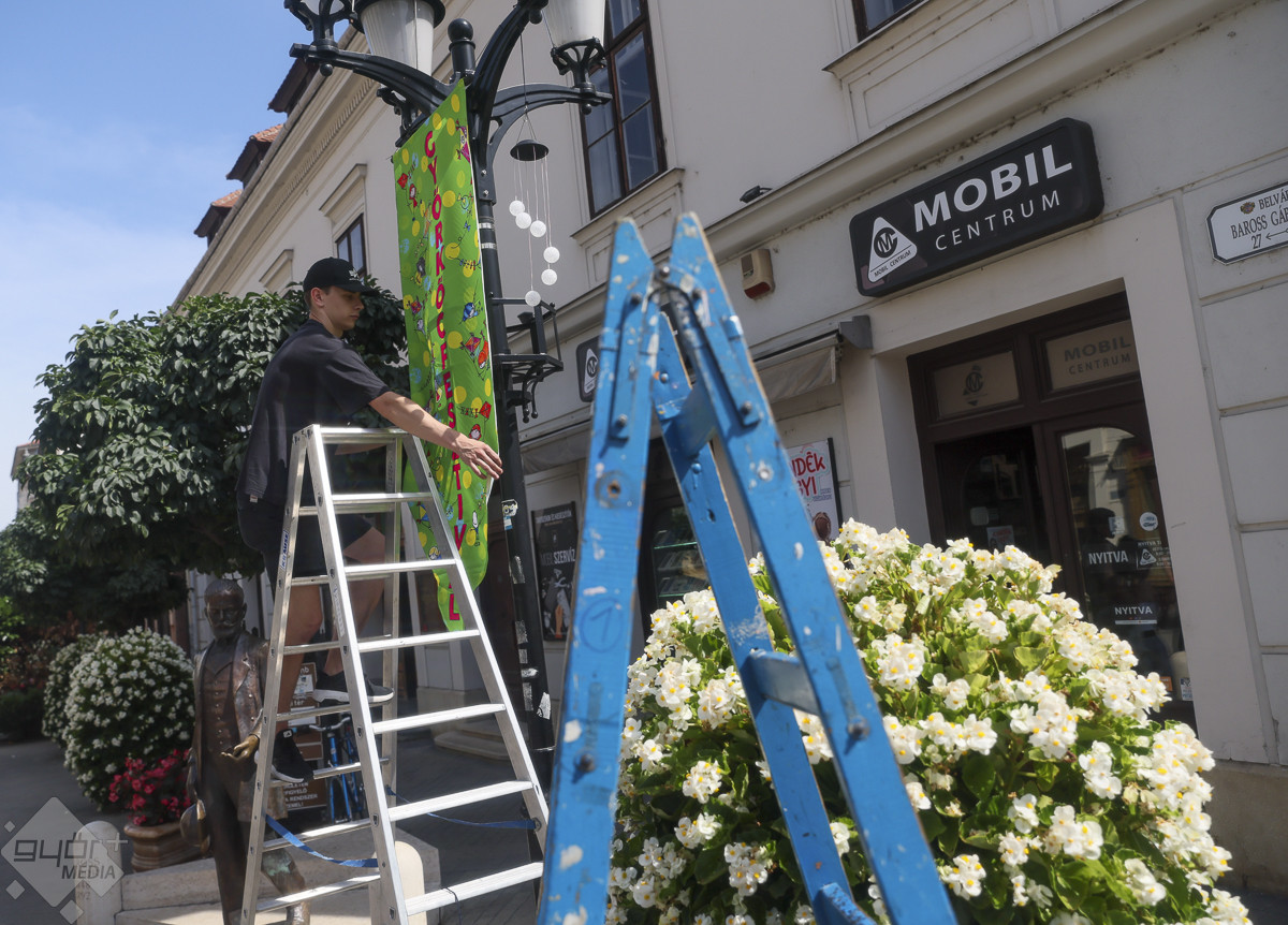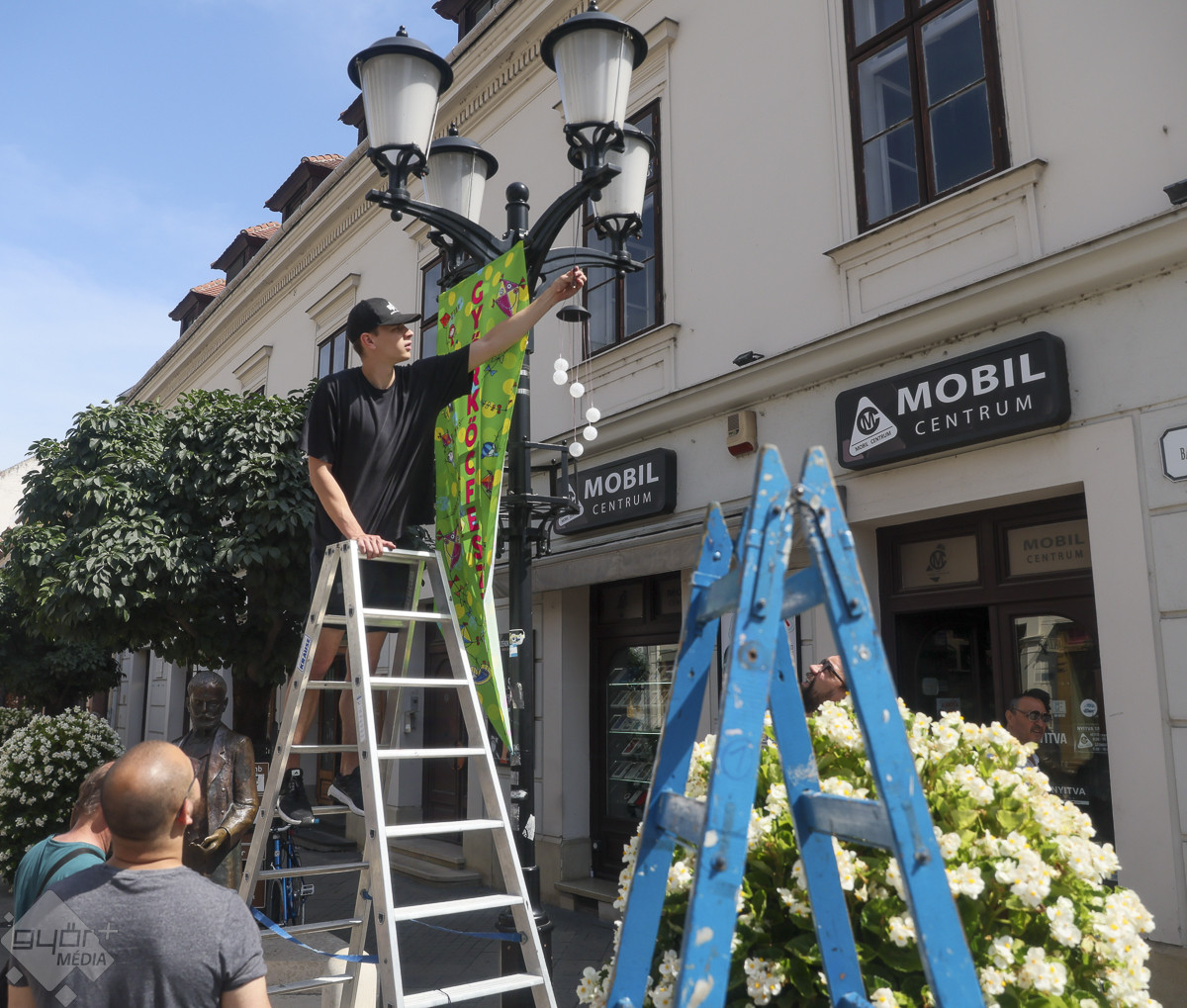 A Vaskakas Bábszínház tagjai hétfőn mindent megtettek azért, hogy kidekorálják a Baross utcát és a környező utcákat is azért, hogy senkinek ne kerülje el a figyelmét a közelgő Győrkőcfesztivál. Ahogy arról beszámoltunk, július első hétvégéjén sok ezer családot vár a közel 1000 program, hagyományosan július 4-e és 6-a között tényleg minden a gyerkőcökről szól majd Győrben.