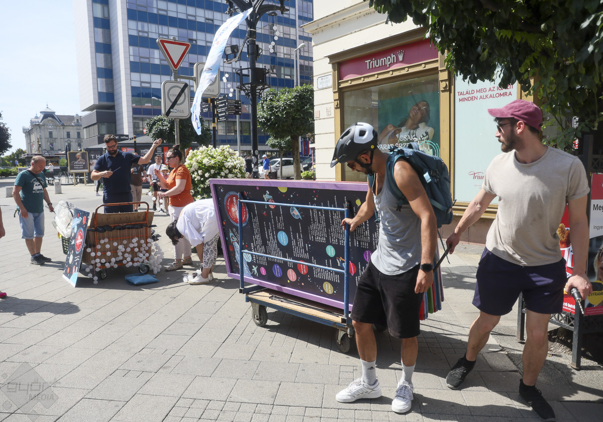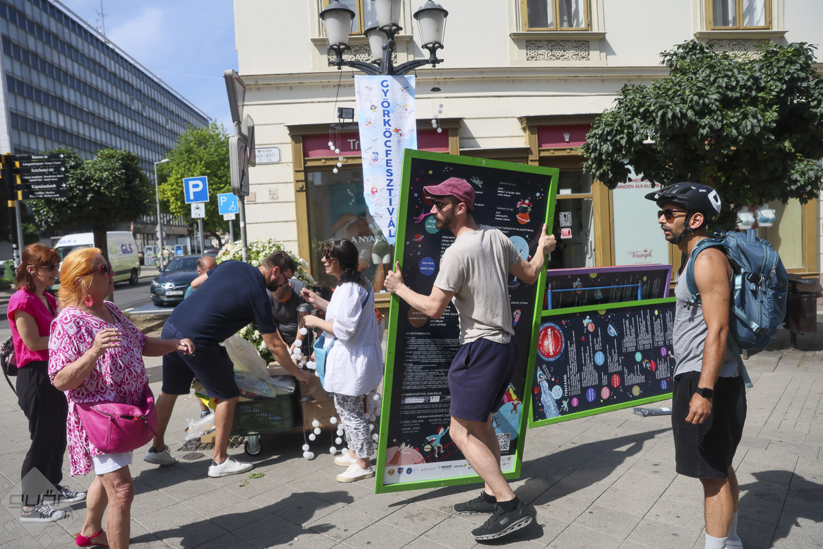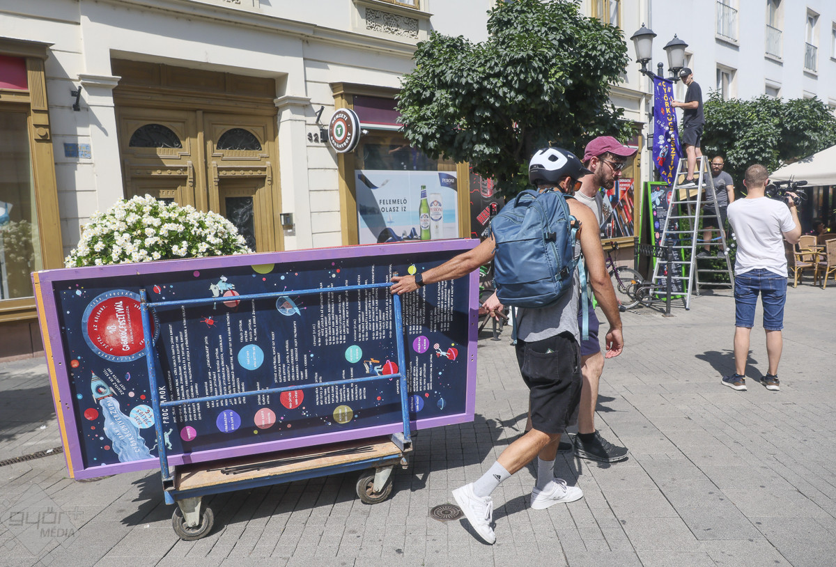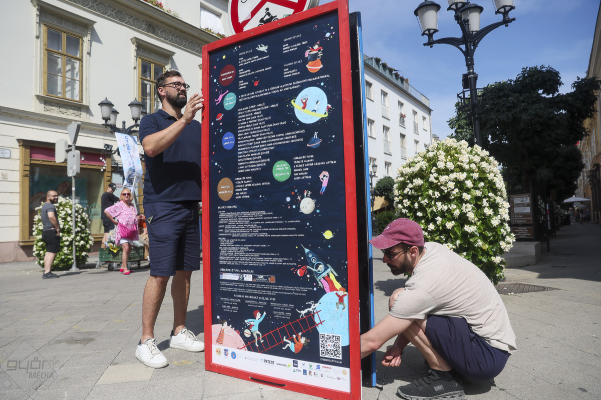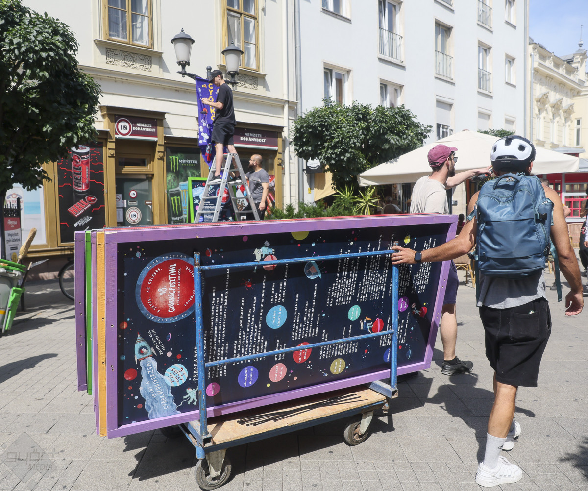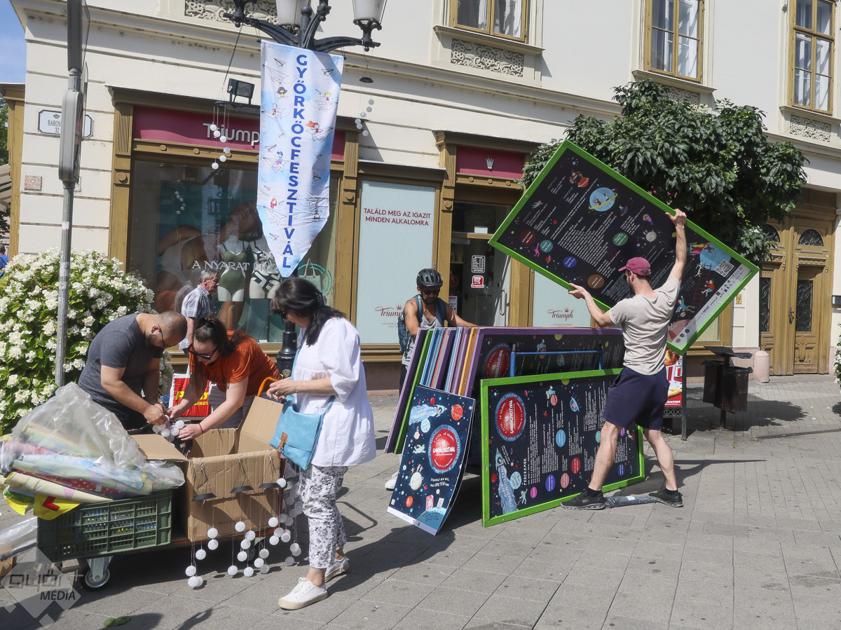 A Vaskakas Bábszínház tagjai hétfőn mindent megtettek azért, hogy kidekorálják a Baross utcát és a környező utcákat is azért, hogy senkinek ne kerülje el a figyelmét a közelgő Győrkőcfesztivál. Ahogy arról beszámoltunk, július első hétvégéjén sok ezer családot vár a közel 1000 program, hagyományosan július 4-e és 6-a között tényleg minden a gyerkőcökről szól majd Győrben.