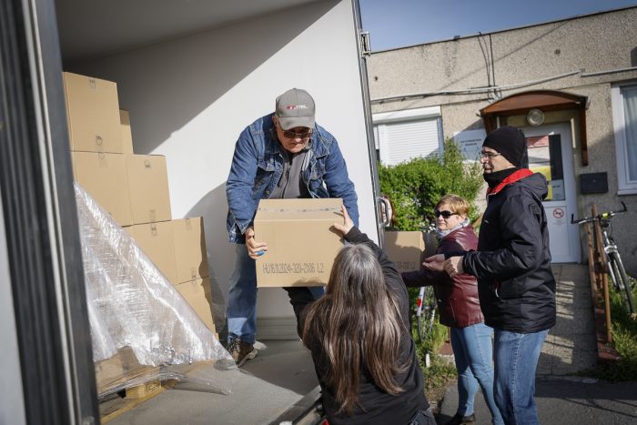 Reggel nyolc óra előtt már többen várakoztak az adyvárosi családsegítő udvarán, ahol pár perc múlva húsvéti adományosztás kezdődött az Európai Borlovagrend jóvoltából.