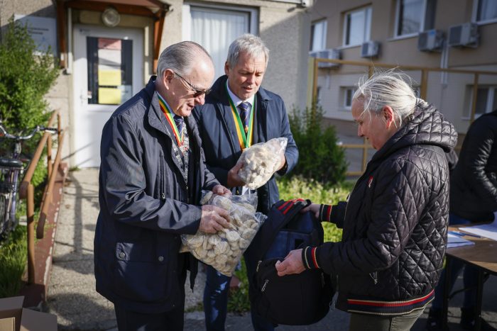 „Ez a sok jótékonysági akciónk közül az egyik. A Családsegítő nagyon komolyan foglalkozik a rászorulók támogatásával, mi pedig tudjuk, hogy biztosan jó helyre kerülnek az adományok. Most is közvetlenül azoknak adjuk át, akik majd elfogyasztják” – nyilatkozta a helyszínen Riegler Antal, a lovagrend első legátja.
