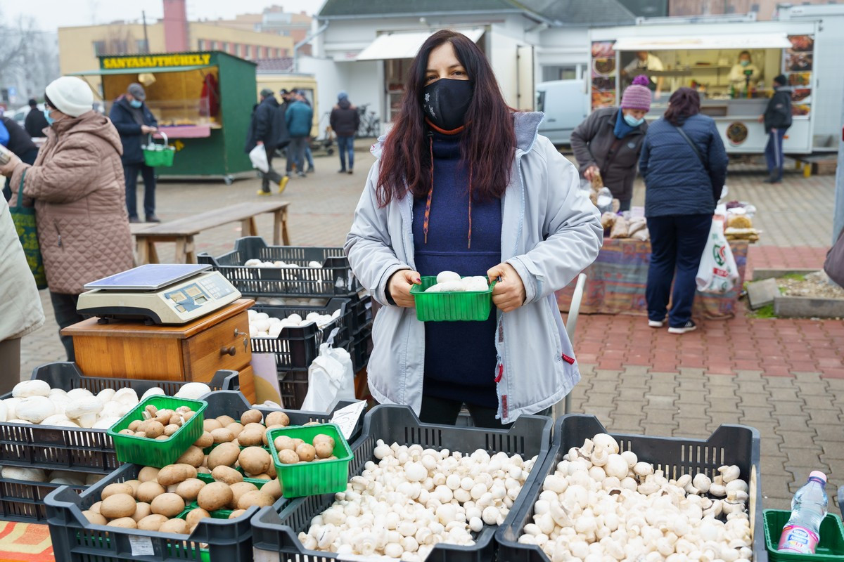 Antalné Tuba Anita szombatonként termesztett barna és fehér csiperkegombát árul. A barna ízletesebb, vadabb, fűszeresebb zamatú. Pároláskor nem esik össze, roppanósabb marad, mint a fehér. Utóbbiból viszont többféle méretűt is a kosarunkba tehetünk. Az egészen kicsi salátának, tölteléknek, a közepes levesnek, paprikásnak kiváló, míg az nagyobbakból remek rántott csemegét készíthetünk.