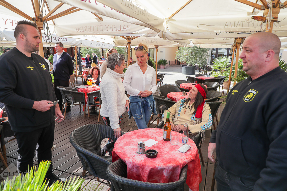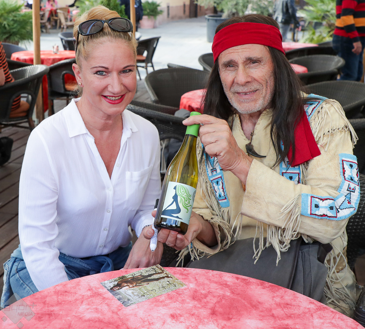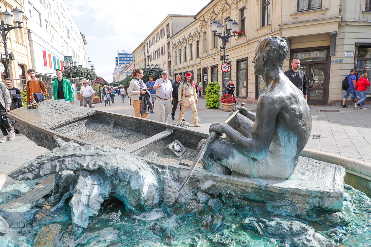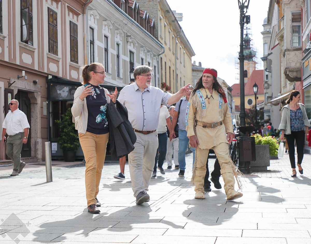 Gojko Mitic jelenleg 81 éves, ám az indián jelmez és paróka alapján akár 30 évet is letagadhatna. A színész először a Városházán tett látogatást, majd Dr. Dézsi Csaba Andrással együtt sétáltak végig a Baross úton, már ekkor több rajongó fotózta a sztárt és a polgármestert, akiket a Széchenyi téren hatalmas tömeg fogadott.