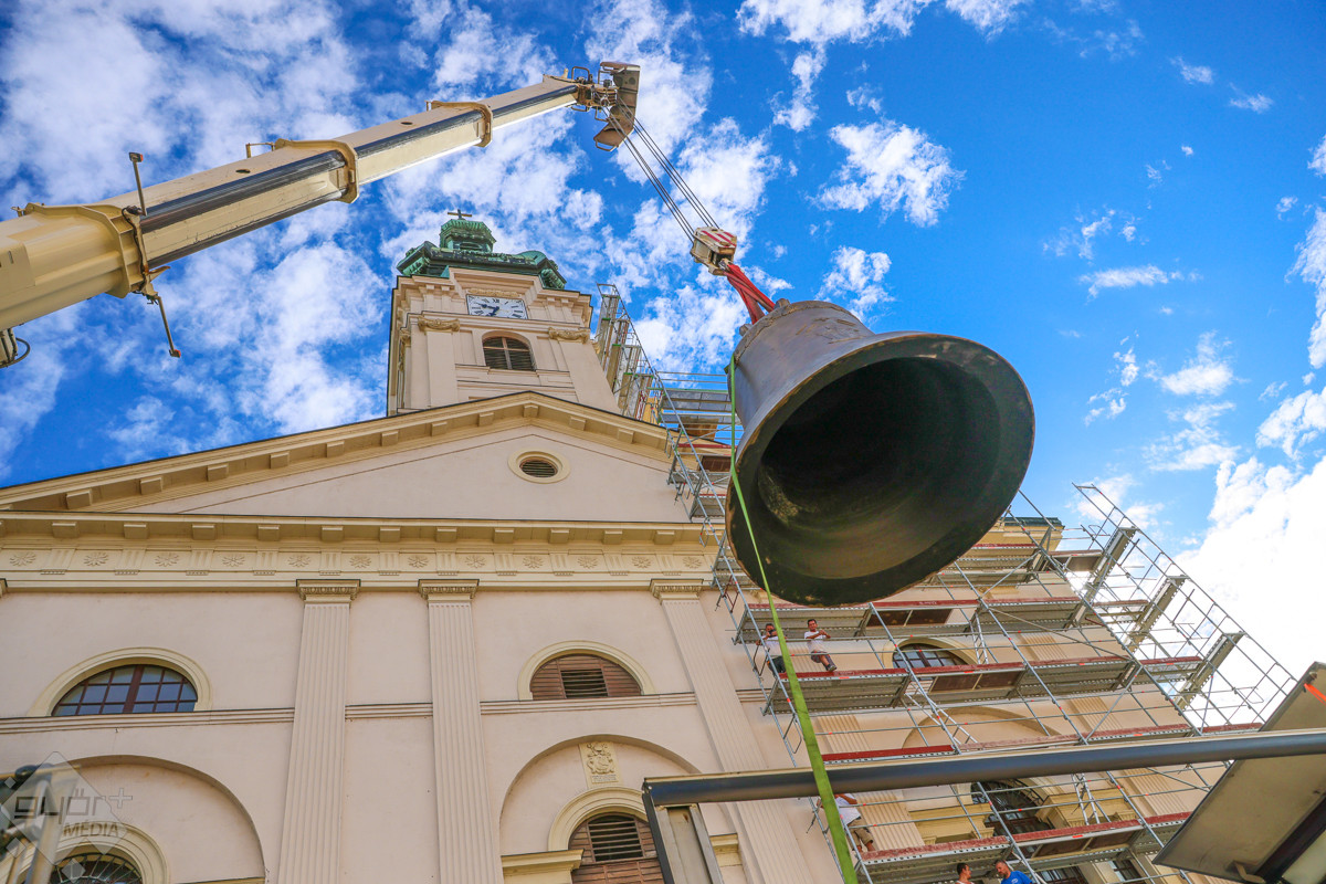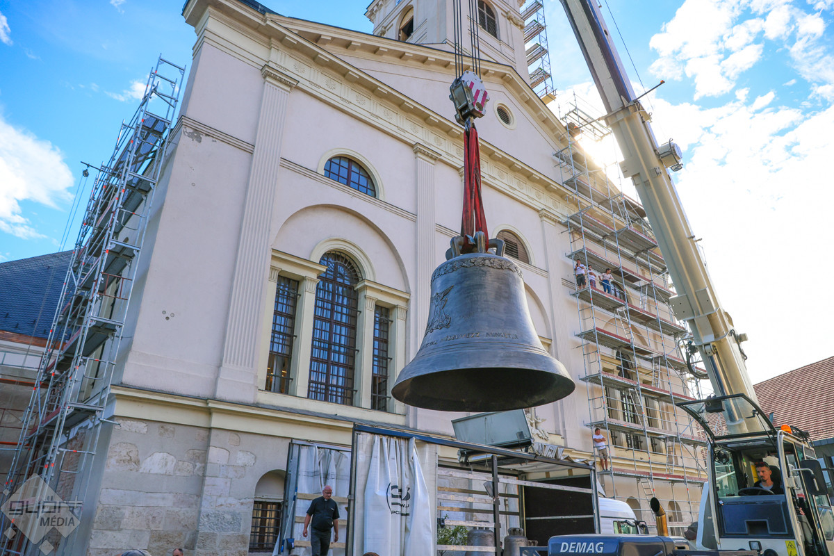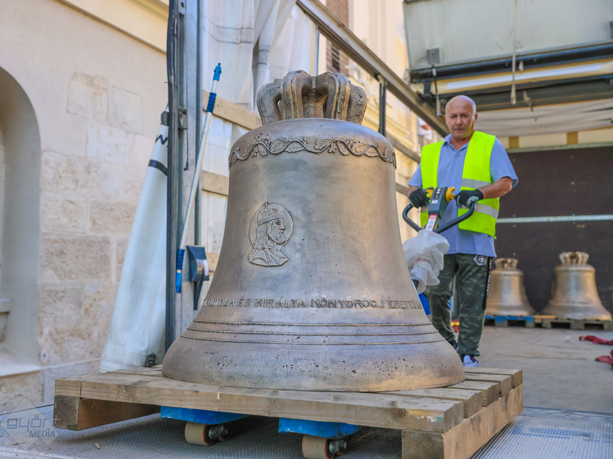 Böcskei Győző kanonok, a székesegyház plébánosa portálunknak elmondta: örömöt és meghatottságot érez, hiszen a bazilika csodálatos értékkel gazdagodott. A hat harangot a templommal szemközti oldalon sorakoztatták fel, ahol mindenki gyönyörködhet bennük.