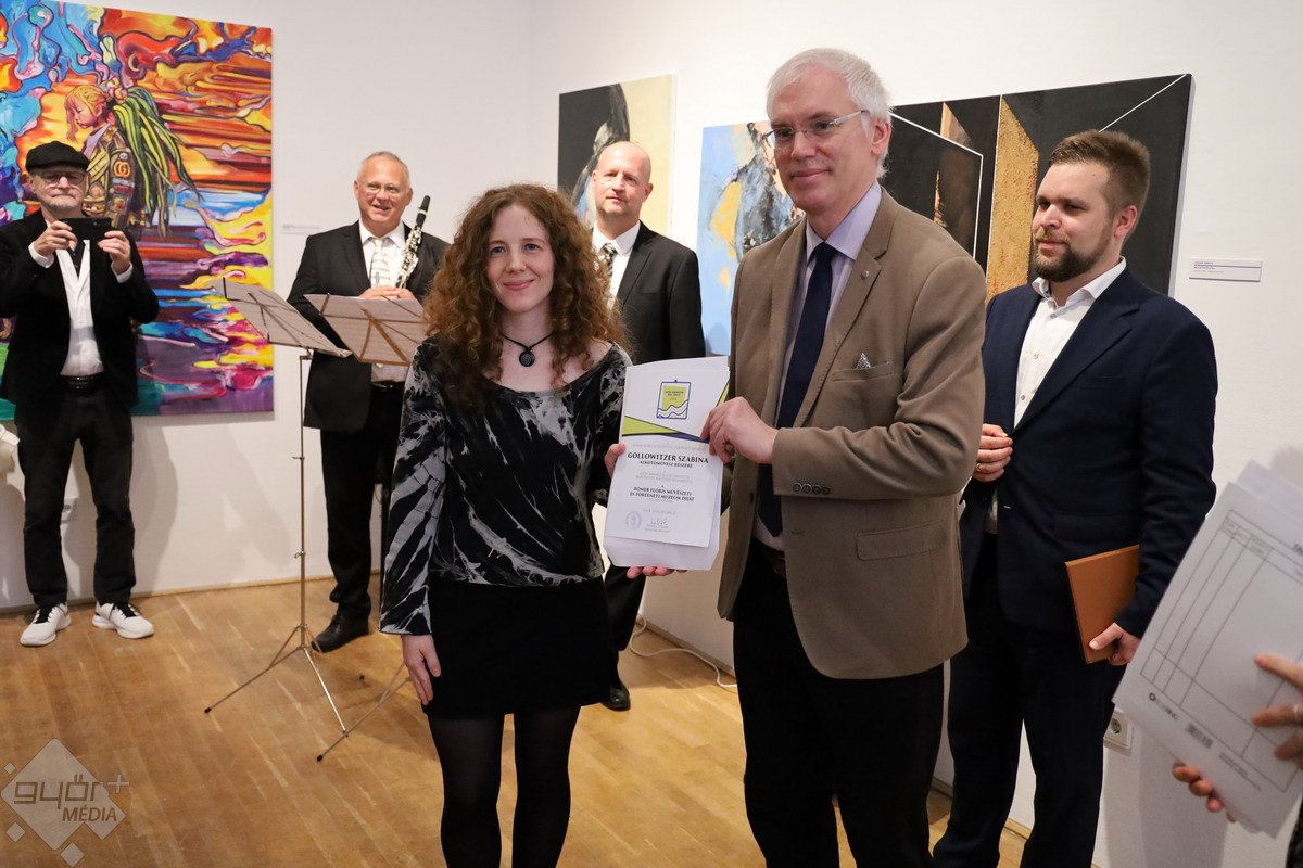 A Rómer Flóris Művészeti és Történeti Múzeum díját Gollowitzer Szabina grafikusművész kapta. “Konkrét inspirációk nekem mindig a természetből vett apró motívumok, itt azonban a képalkotási módszer a lényeges, nem feltétlenül az inspiráció. Nekem ez egy nagyon hosszú munkám, aminek két darabja van most itt. Doktori iskolába járok a Pécsi Tudományegyetemre, és az ottani művészeti kutatásom része az itt kiállított két mű, nagyon frissek alig négy hetesek. Mindig nagyon jól esik, ha méltatják az embernek a munkáját, de hiszem, hogy itt nagyon sokan megérdemlik Győrben az elismerést, főleg ezen a kiállításon” – emelte ki a művész.