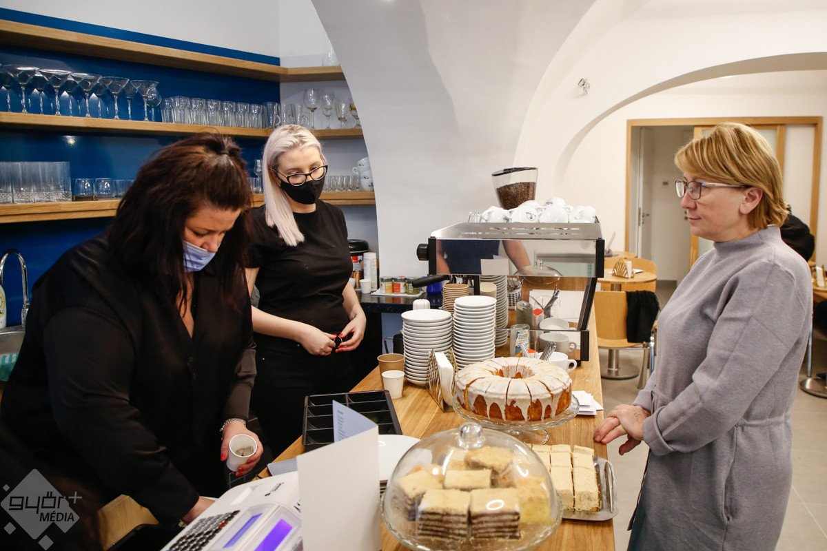 Korábban nyit és később zár a Győr 750 Múzeum Kávézó, mint maga az Esterházy-palota. Hiszen fél nyolctól már várja a reggel dolgozni indulókat egy finom kávéra, szendvicsre, vagy péksüteményre. A múzeum este hatos zárása után csak a kiállítótértől elválasztó üvegajtó zárul be, maga a kávézó este tízig nyitva áll a vendégek előtt.