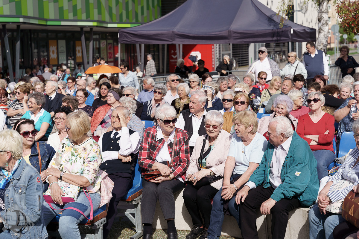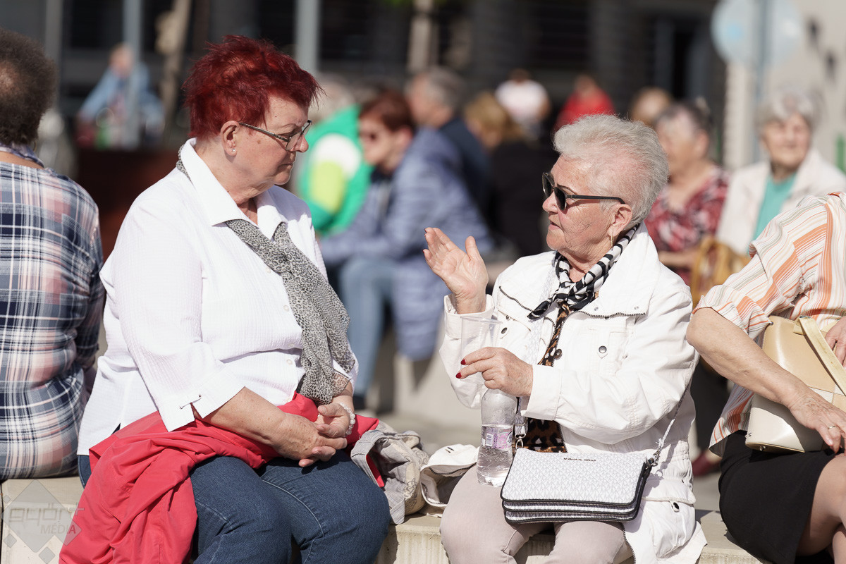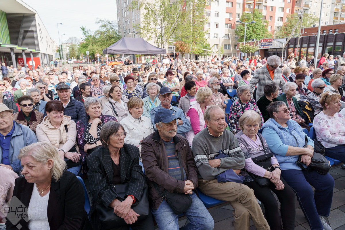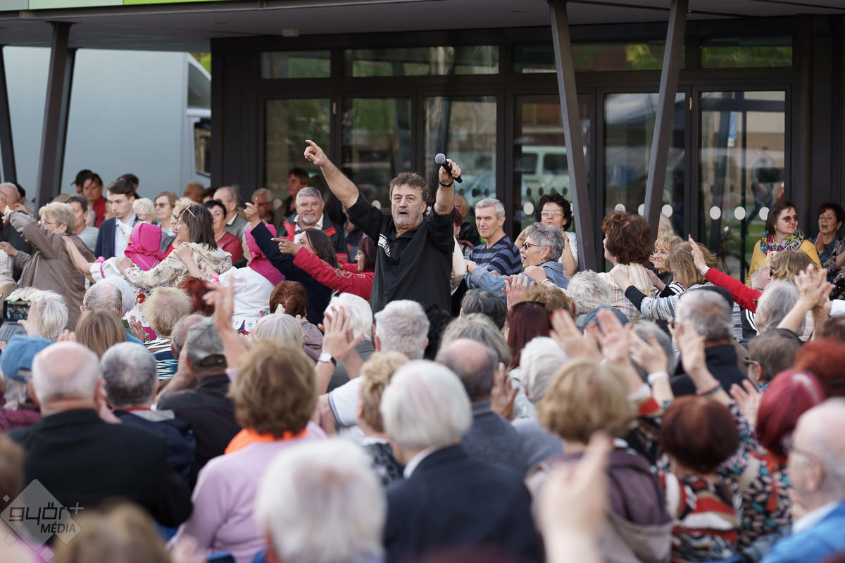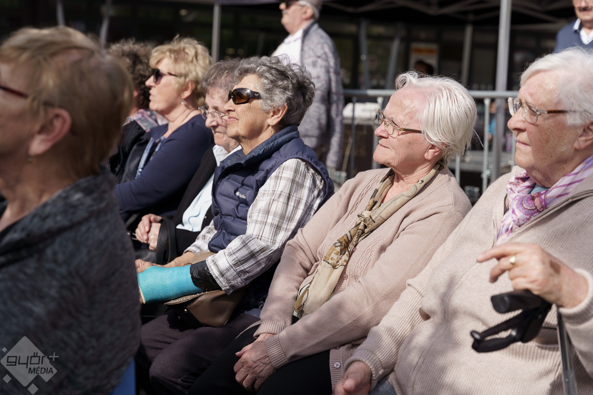A győri nyugdíjasok megadták a módját az ünneplésnek. A klubházban egymást követték a programok. Volt Senior táncház, Lázár Attiláné és társai citeráztak, Ézsiásné Piroska zenélt, Madarász Istvánné mesét, Égerné Márta, Hani Jánosné, Boros István, Nátz Irén, Lukács Erzsébet verset mondtak. A téren pedig estébe nyúlóan szólt a zene. Fellépett a Határtalan dallamok kórus és zenekar, az Obsitos Nosztalgia Dalárda, a Szabadhegyi Nótaklub, a Fitt Mamik Senior Örömtánc Csoport, Kulcsár Béla harmonikaművész, Hagen Orsolya énekművész. A jó hangulatot tovább fokozta Janicsák István és a Veresegyházi asszonykórus, akik a színpadra hívták táncolni a közönséget.