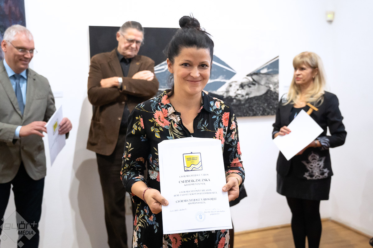 Győr Megyei Jogú Város díját, amelyet idén Csermák Zsuzska grafikusművész érdemelte ki, aki két, a Balatont ábrázoló, nyáron készült akvarell festményével lopta be magát a zsűri szívébe. A művész a mikrokörnyezetéből vett inspirációkat próbálja képekben megfogalmazni. Meditatívabb irányt képvisel, az akvarell és vizes festéket ellensúlyozza a geometrikus, fémes formákkal – ez az ami mostanában foglalkoztatja Csermák Zsuzskát.