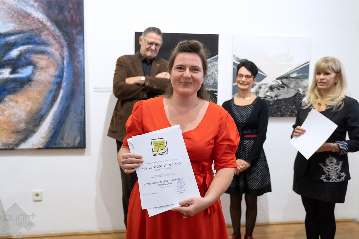 A Rómer Múzeum díját Varga Gyöngyvér Amala üvegművész kapta, két alkotásáért, amelyek a Goodbye és a Peace címet viselik. A művész munkáit a hagyományos képalkotás és digitális technológia ötvözésével készíti. A festett üvegképeket nyomtatással jeleníti meg a transzparens üveg felületén és ezekből rétegképeket készít. Jelenleg az foglalkoztatja, hogy alkotásait térben installálja, az üvegképeit átvilágítja.