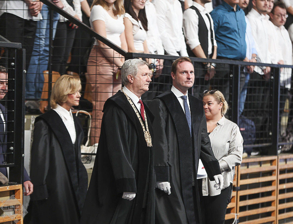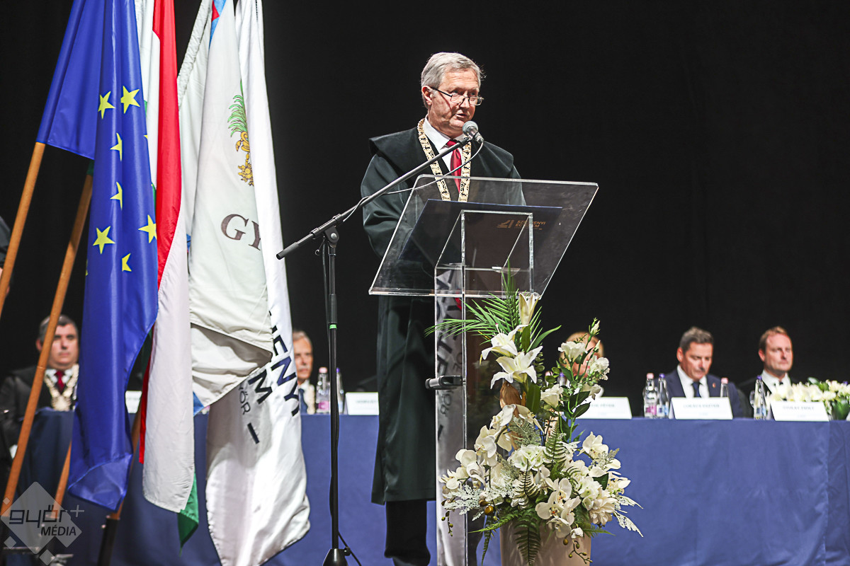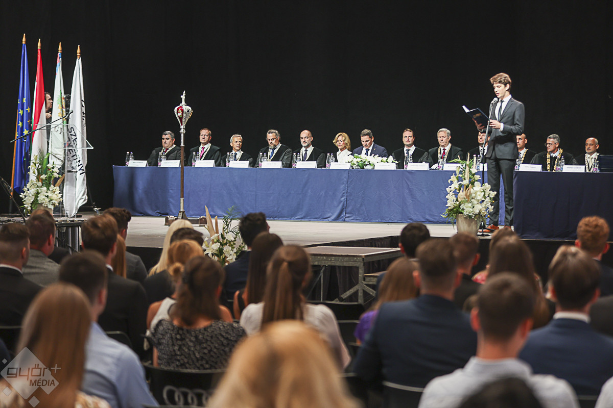 ,,Képletesen egy olyan utazást kezdenek meg, amely meghatározza életük alakulását és megalapozza a későbbi sikereiket. Aki továbbtanul, olyan befektetést választ, ami majd sokszorosan megtérül. A Széchenyi Egyetem hazánk legdinamikusabban fejlődő felsőoktatási intézménye, amely kilenc karon több mint 200 magas színvonalú képzést kínál a csaknem nyolcvan országból érkező hallgatóinak. A tanulás mellett további szakmai utat is biztosít az egyetem. A hallgatók fejleszthetnek drónokat, önvezető járműveket, alkalmazhatják a mesterséges intelligenciát, foglalkozhatnak űrjoggal, részt vehetnek a világ alapvető problémáinak megoldásában” –  sorolta a lehetőségeket a rektor.