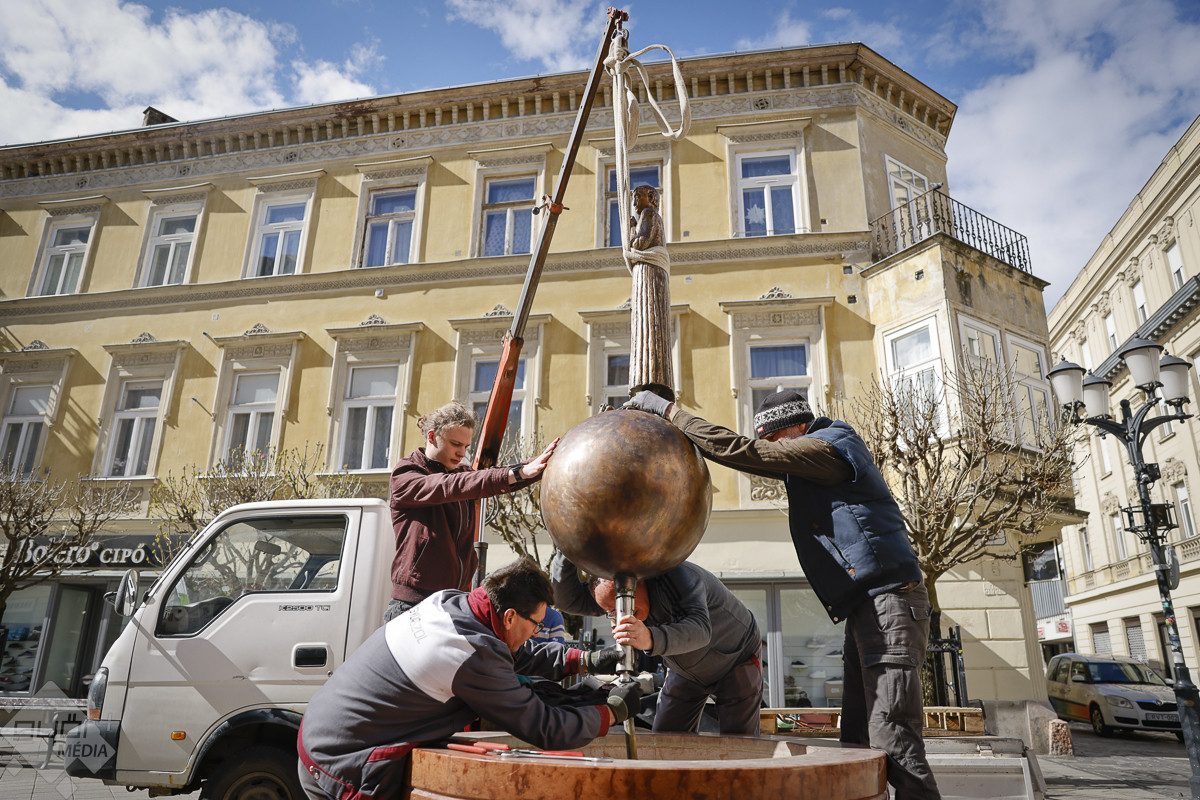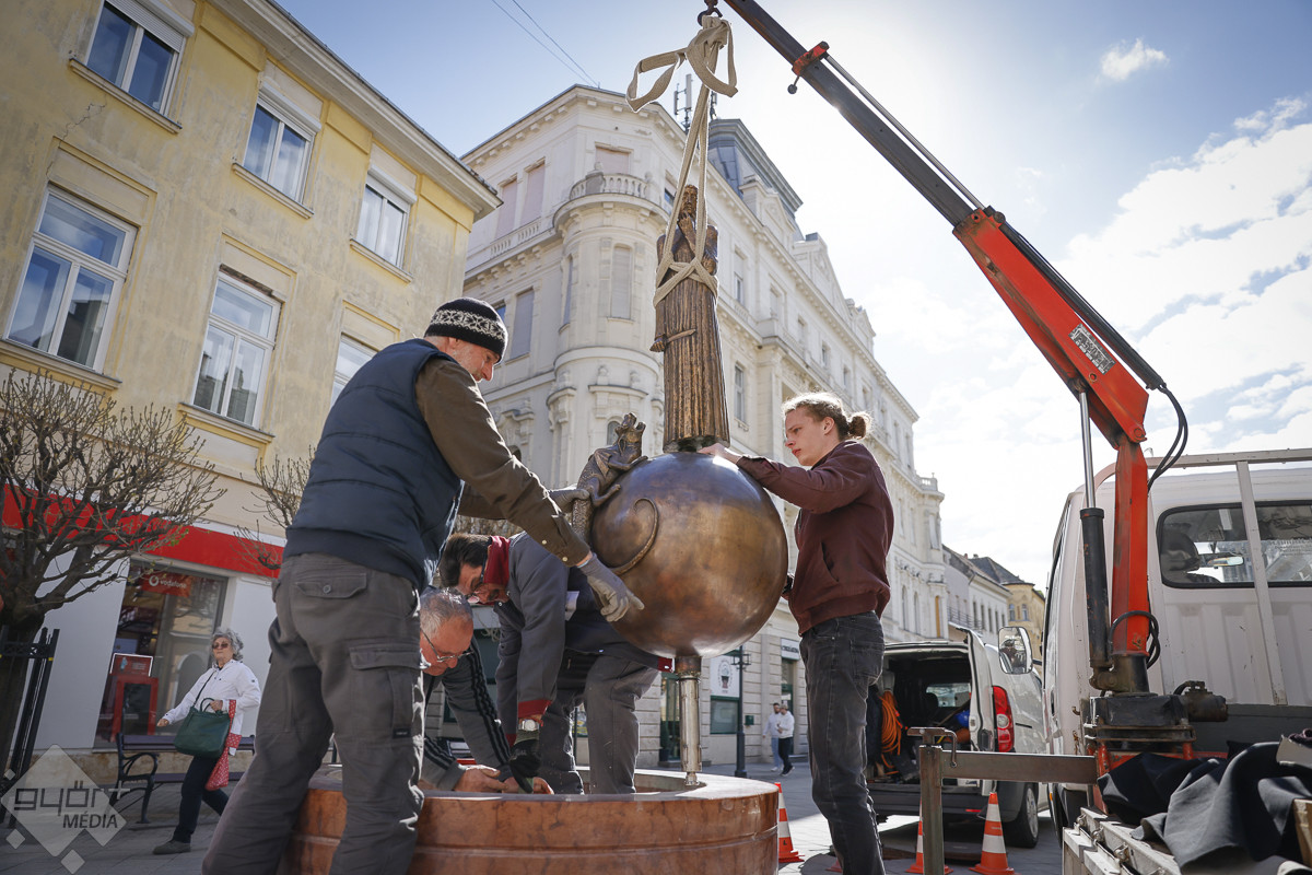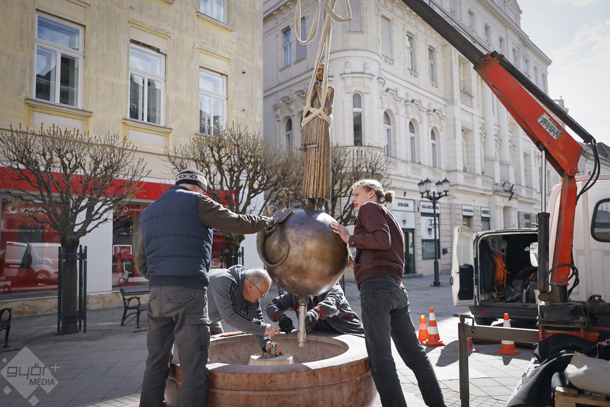 A Győr-Szol Zrt. munkatársai a díszkút medencéjének vízellátó rendszerét is felújították. A helyreállított alkotást a győri szökőkutak többségével együtt a következő hetekben helyezik üzembe.