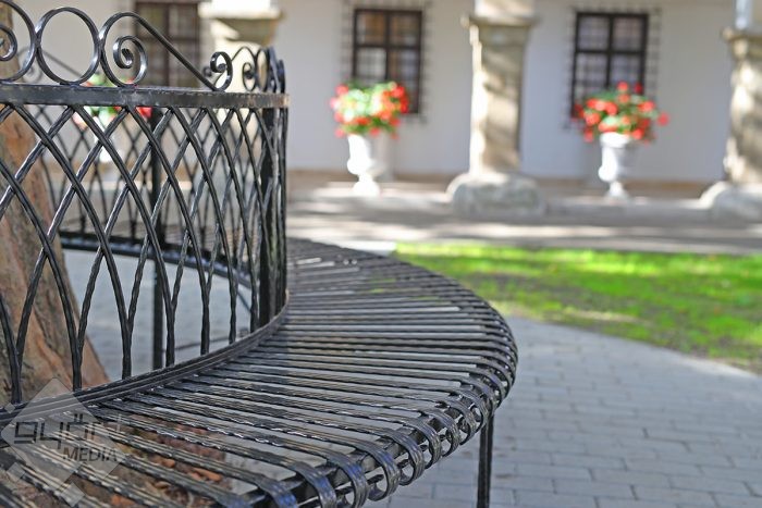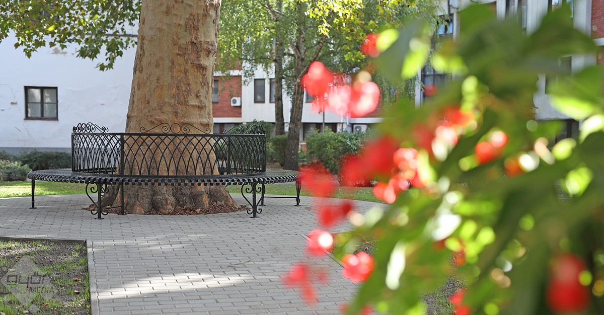 Megszépült környezet várja a Zichy-palota udvarán fotózkodó párokat. A hatalmas, idős platánfa köré kovácsoltvas pad került, díszburkolatot építettek és befüvesítették a területet.
