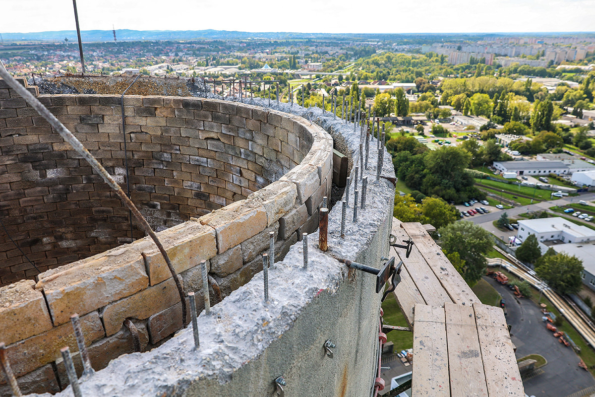 A Győr számos pontjáról látható hatalmas kémények évtizedek óta hozzátartoznak a város sziluettjéhez. A tavalyi évben a legnagyobb, a 101 méter magasságú kémény úgynevezett romtalanítási munkálatai már megtörténtek, idén pedig 110 millió forintból a két, 80 méter magas „kistestvér” újul meg.