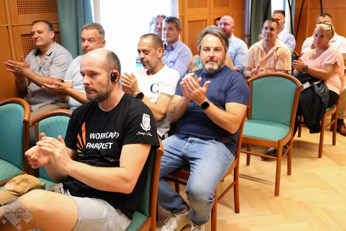 „ Csapatunk kizárólag mesteremberekből áll, sokan közülük harmadik, negyedik generációs művelői szeretett szakmájuknak. Restauráljuk, felújítjuk, megóvjuk a parkettát. Belga barátom például a belga királynő padlóját szokta restaurálni. Nagyon komoly szakemberek gyűltek itt össze. Hazánkban sajnos a parkettás szakma bajban van, mert képzés hiányában nincs utánpótlás. Ilyen típusú munkavégzést, ami most történt a püspöki palotában, senki nem tud Magyarországon csinálni. Harmincan vagyunk itt és 220 négyzetmétert újítottunk fel. Csak hagyományos módszerekkel és technológiával végeztük az állagmegóvást, a felületkezelést, javítást és restaurálást. Ahol már nem lehetett a régit megmenteni, mintegy 55 négyzetméteren teljesen új parkettát tettünk le.”