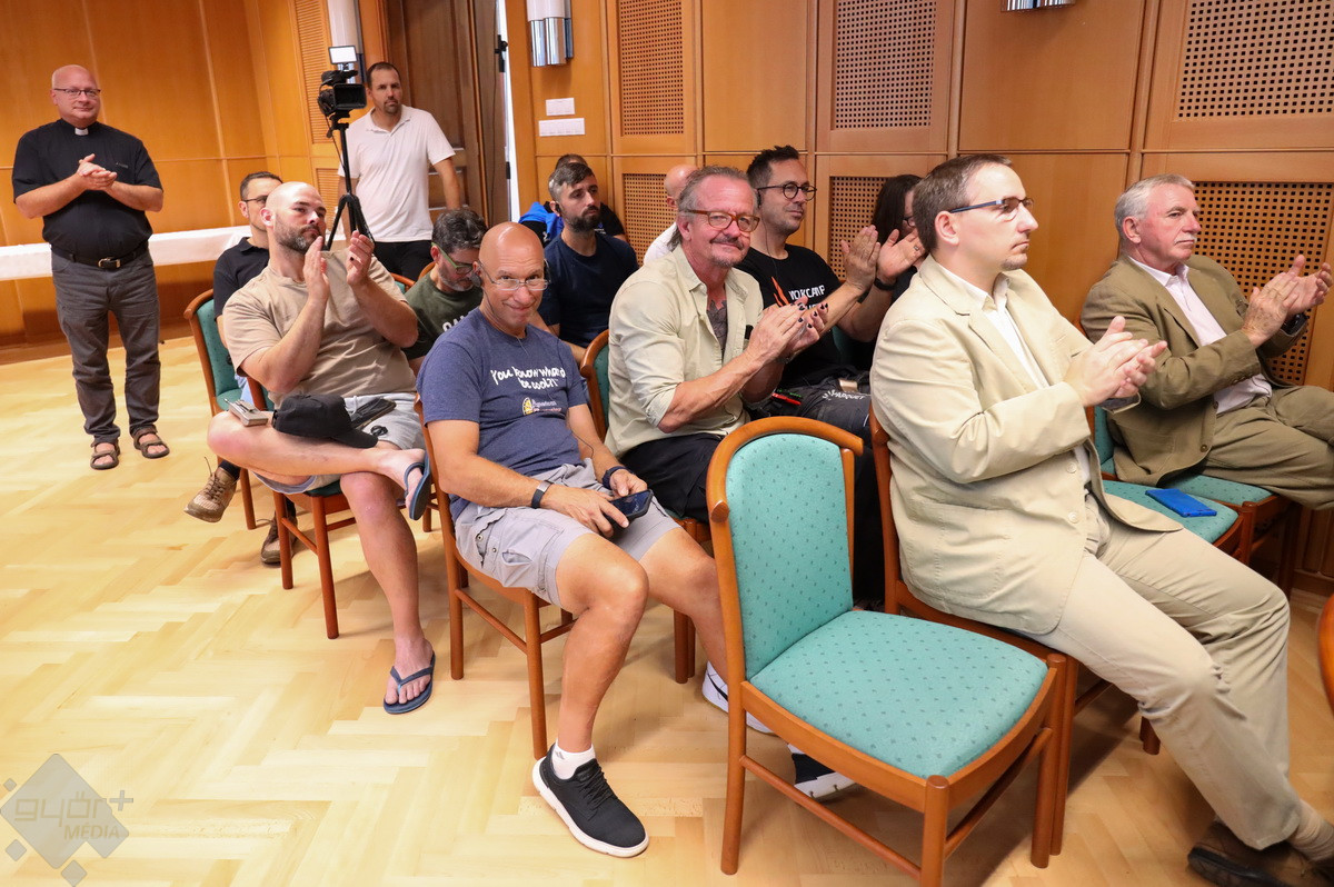 Nem szokványos eseménynek adott otthont a hittudományi főiskola csütörtök este. Amerikából, Kanadából, Ausztráliából és Európa számos országából összejött szakemberek töltötték meg a dísztermet, akiknek dr. Veres András megyéspüspök mondott köszönetet munkájukért. A csapat ugyanis kilenc nap alatt, ingyen felújította a Püspökvár parkettáját.
