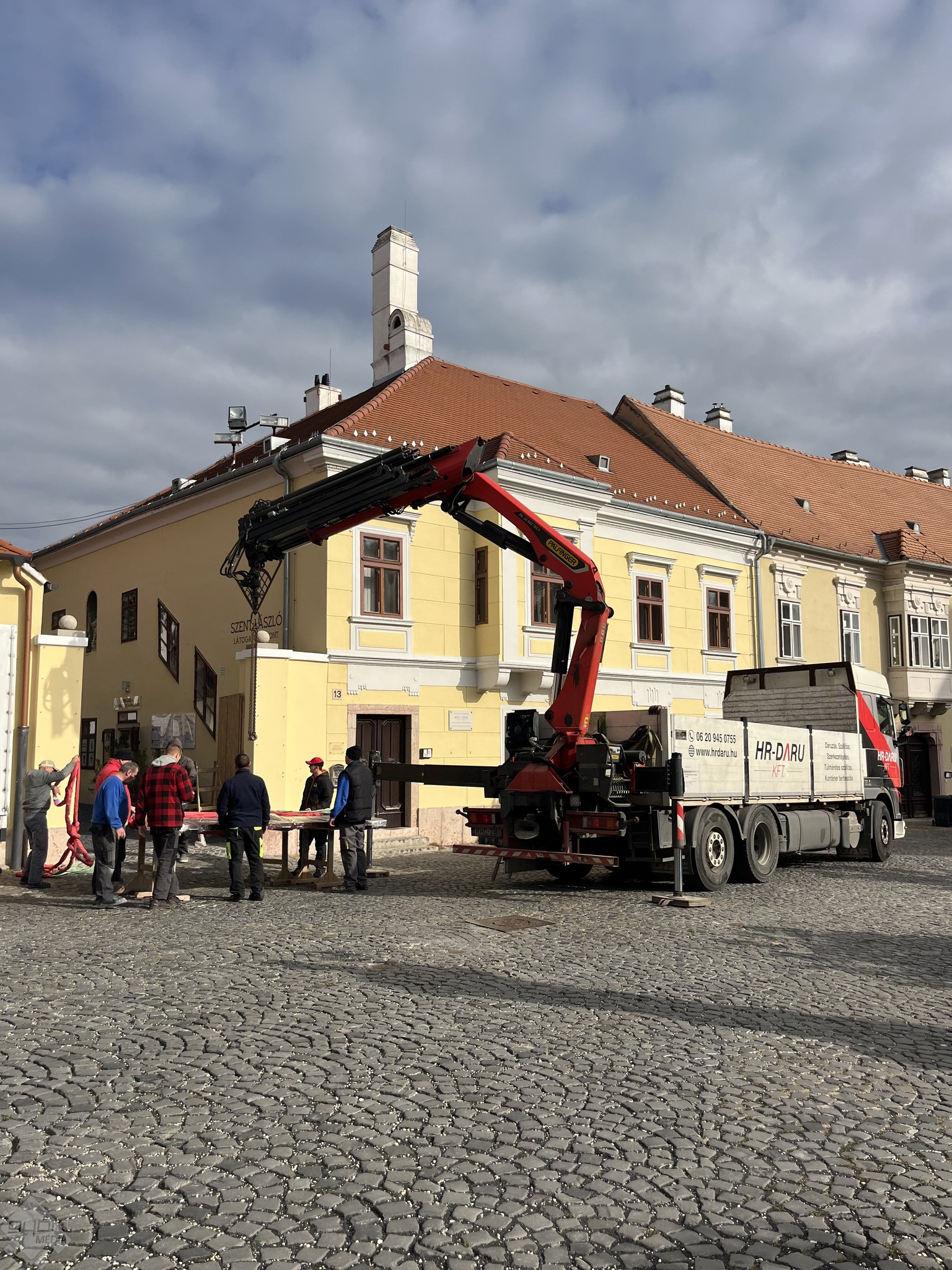 A hatalmas faelemeket daru segítségével emelték a helyükre.