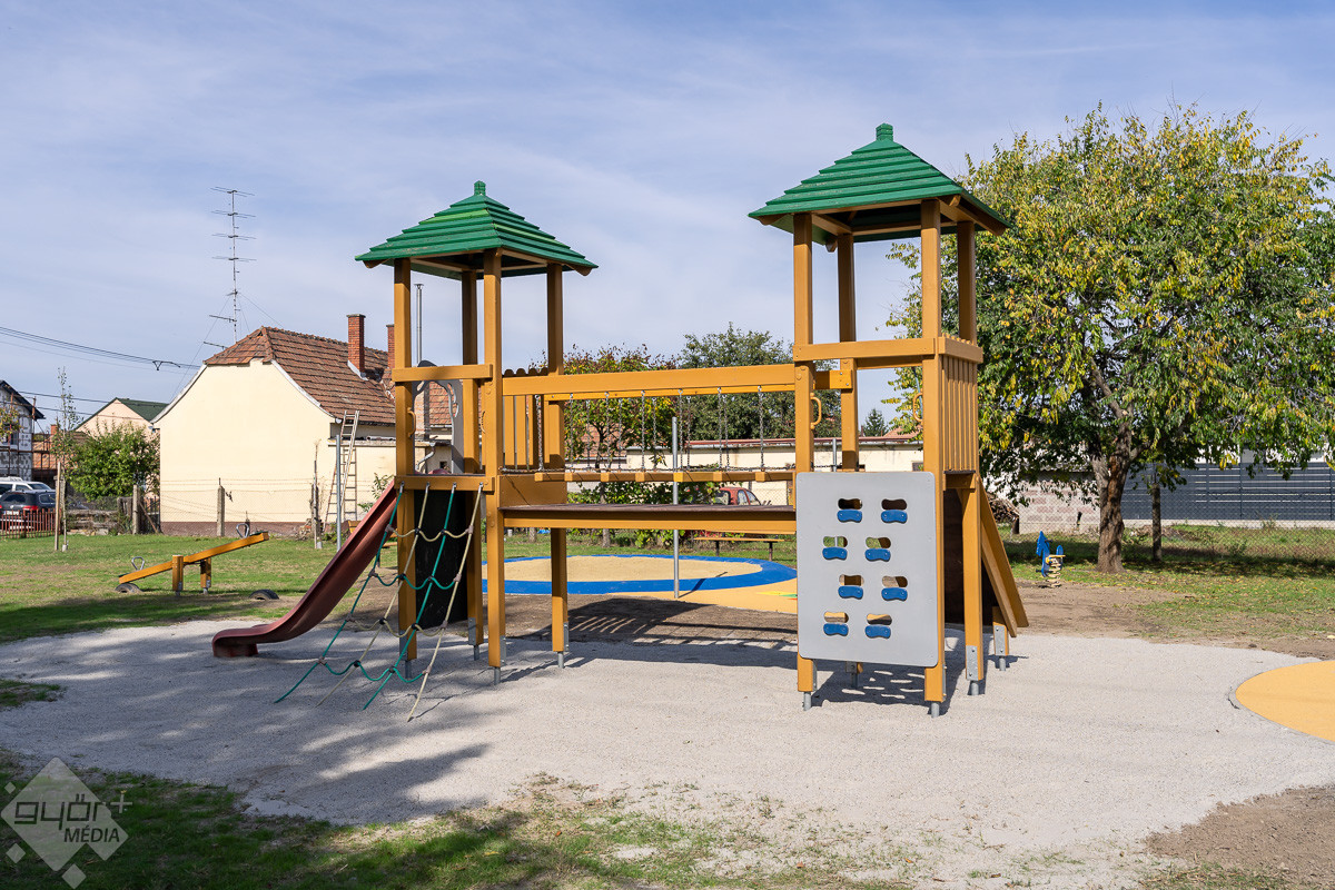 A három új játék mellett a régi eszközöket is felújította a Győr-Szol, lefestették azokat, kicserélték az elhasználódott elemeket. Új bejáratot létesítettek, innen az egyik új elemhez érkeznek a gyerekek. Ez körbejárható biciklivel, rollerrel, kis dombrésze van, új elem még egy csiga formajáték, a belsejében kis alagúttal, valamint megújult a homokozó környezete, amely ugróiskolával egészült ki. A játszótér mellett pedig ivókutat is létesítettek – erről Prédl Antal a Győr-Szol vezérigazgatója tájékoztatott.