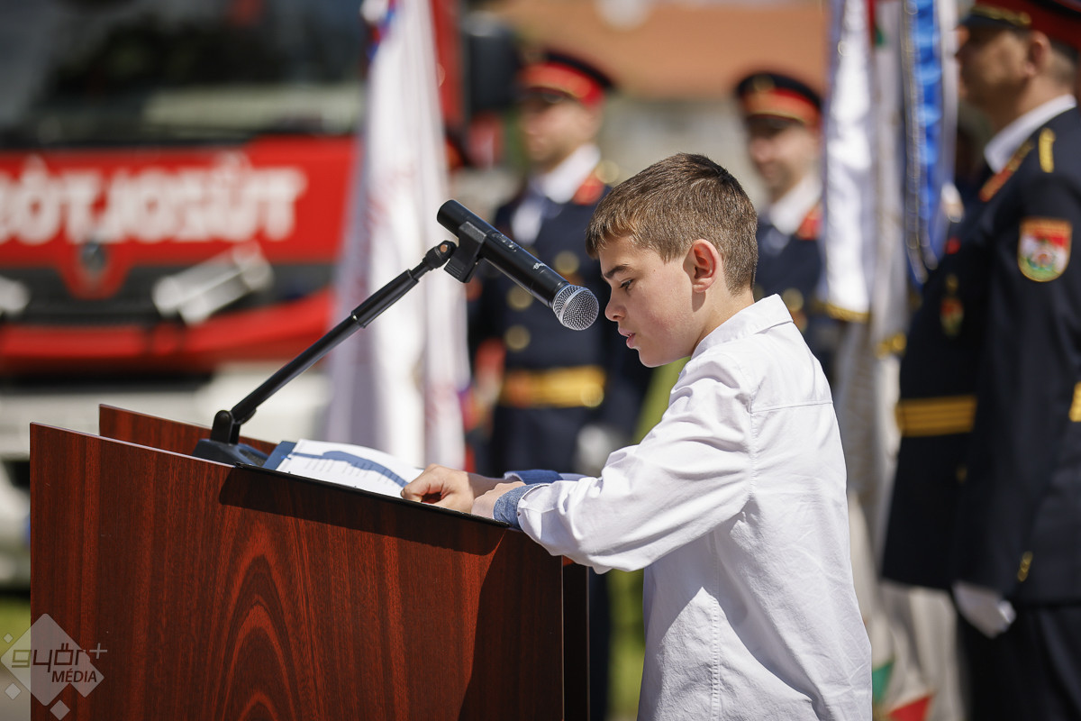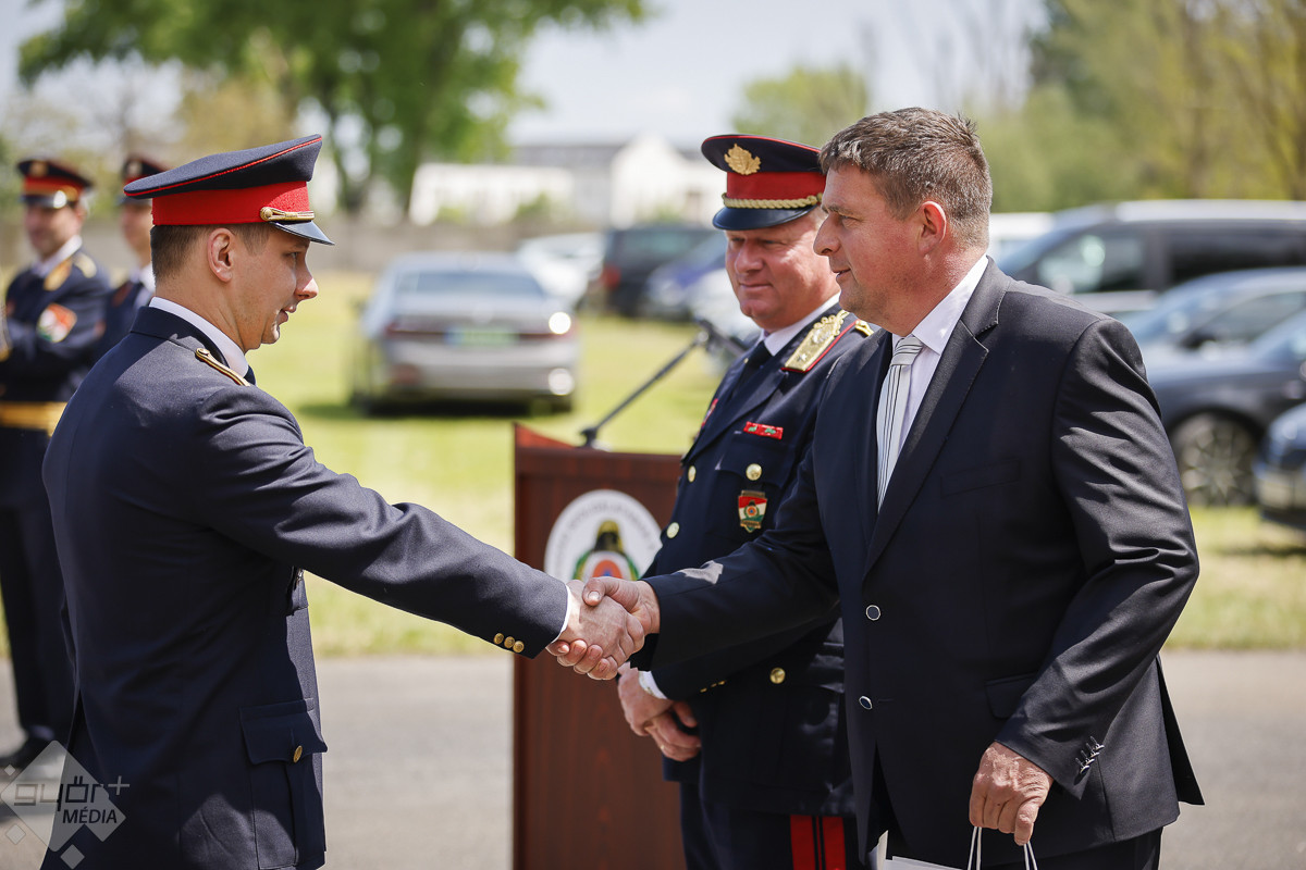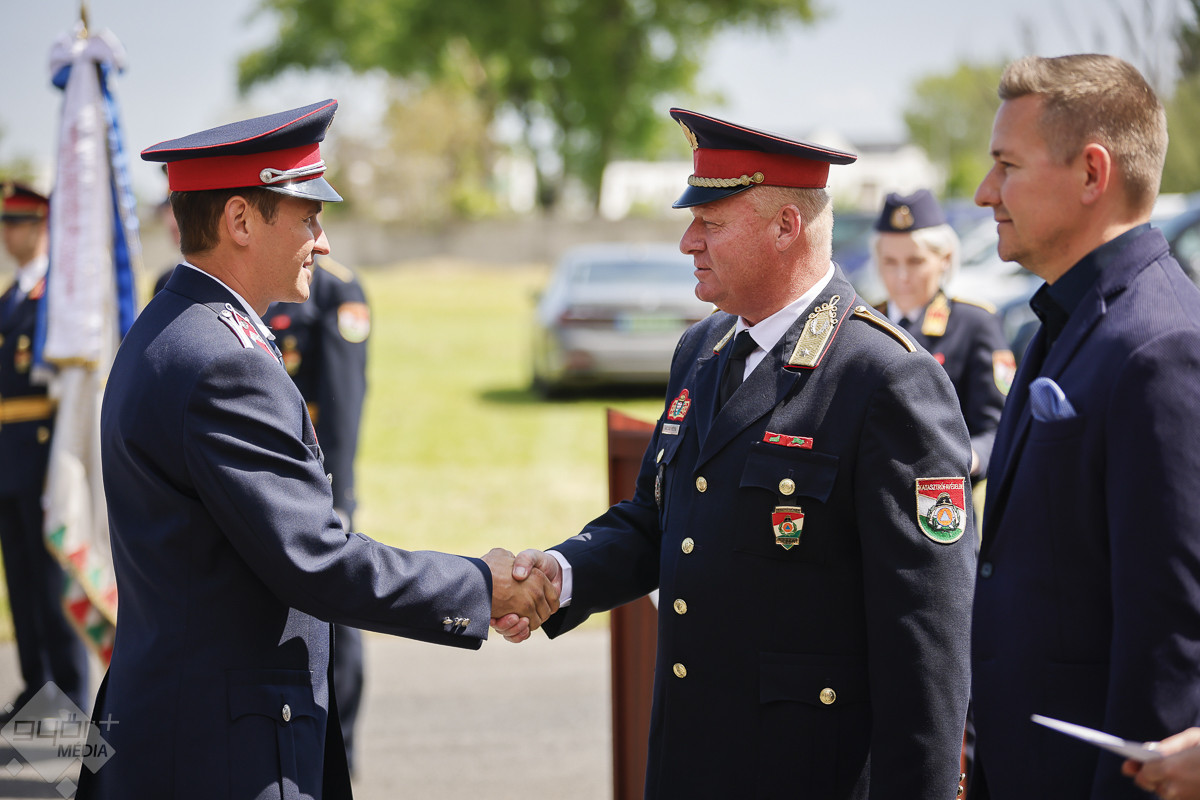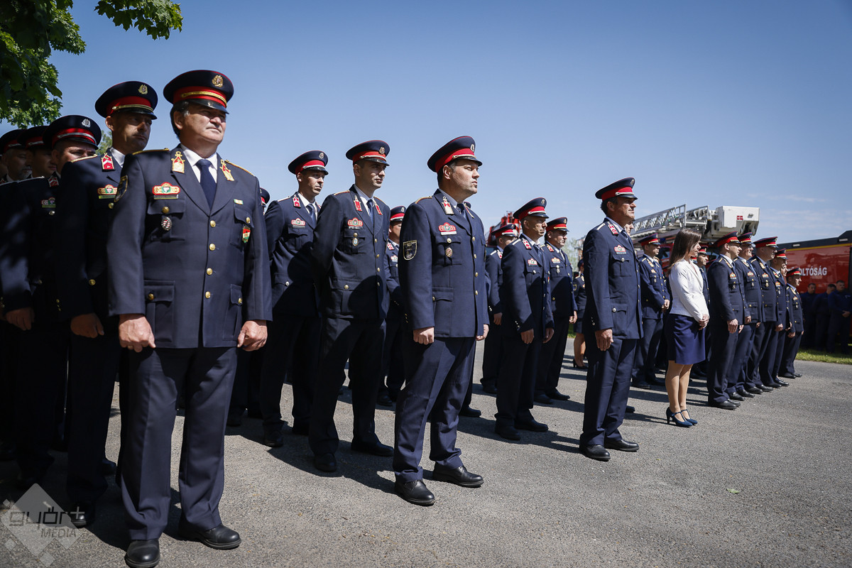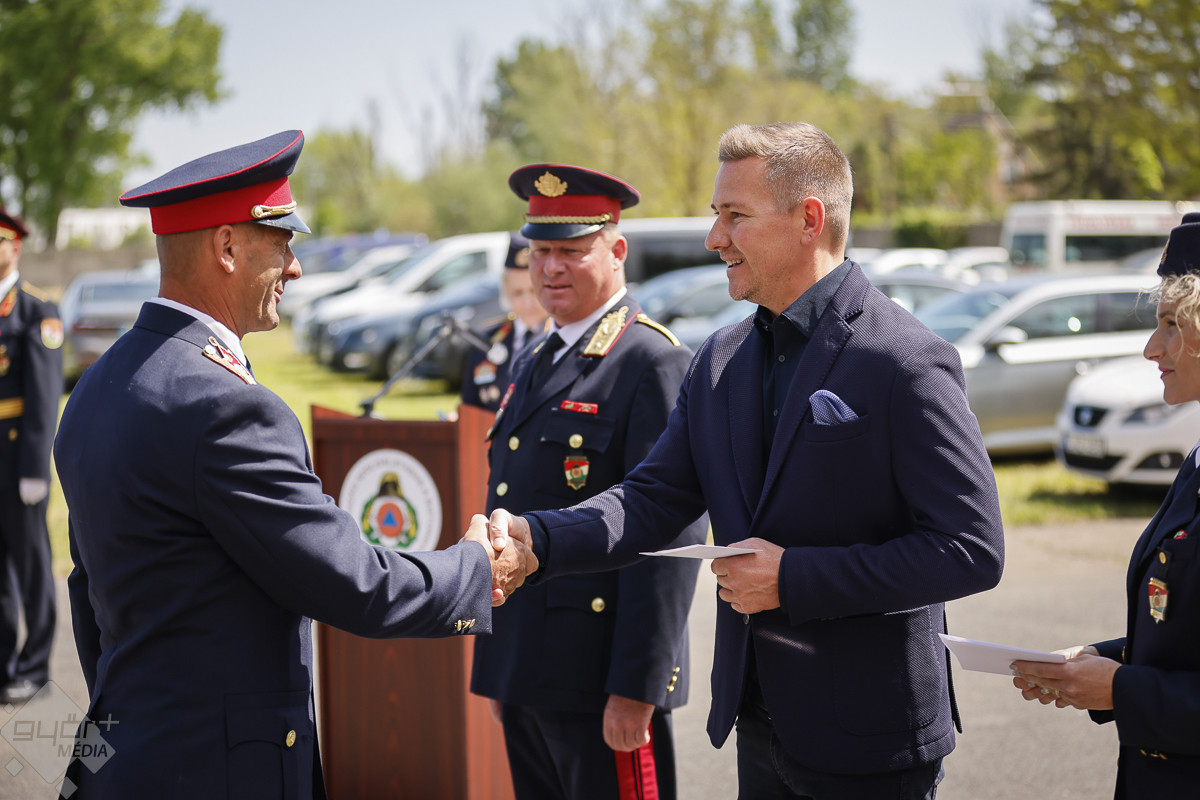 „Menteni, az életed árán is! Ennél igazabbat nem lehet kitalálni a tűzoltók munkája előtti tisztelgés napján. Számomra a tűzoltók embereket jelentenek, olyanokat, akik mentenek, az életük árán is. Május 4. a tűzoltók és a kéményseprők ünnepe, Szent Flórián ünnepe, akinek szobra vagy képe szinte valamennyi településünkön megtalálható. Vértanúhalált halt, mert hite erősebb volt, minthogy életét védje. A mai tűzoltók szerepe Magyarország közbiztonságában szinte megegyezik Szent Flórián bátorságával és tetteivel, hiszen ők is olyan helyekre rohannak be, ahonnan mindenki más fejvesztve menekül. Elmondhatom, hogy olyan személyi állománnyal dolgozhatom együtt, akik 2010. novembere óta folyamatosan estek át a nagyobb iparai és természeti csapásokon, dolgoztak kárfelszámolásokon. Részt vettek az évszázad dunai árvízi védekezésében, a Covid elleni védekezéseben és a háborús menekültek ellátásában is” – hangsúlyozta az igazgató, majd arra is kitért, hogy az elmúlt évek arra is lehetőséget adtak, hogy képességeiket is fejlesszék, és szerencsére a bevethető eszközpark is folyamatosan fejlődik.