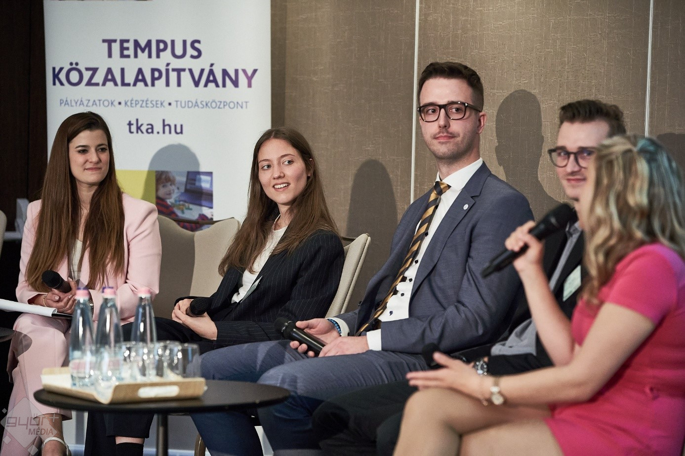 A konferencián „Nyiss a világra!” címmel Pannónia-nagykövetek, illetve kiválósági mobilitásban részt vett, illetve a közeljövőben részt vevő hallgatók kerekasztal-beszélgetésen osztották meg tapasztalataikat. Közülük ketten a Széchenyi István Egyetemet képviselve ismertették személyes élményeiket és várakozásaikat a közönséggel. A mesterszakos Mudrák Sára a világ legjobb intézményei közé tartozó, nagymúltú Bolognai Egyetemen regionális és környezeti gazdaságtant tanulhatott kiválósági ösztöndíjjal. „Esetemben ez azt jelentette, hogy plusztámogatást kaptam az egyetemtől, így biztosított volt a lakhatásom, ami hatalmas segítség volt, hiszen Bolognában a szállás sokszor problémát okoz” – részletezte a tehetséges fiatal. Elmondta: mindig is nagy álma volt, hogy Olaszországban éljen, így nagyon hálás, hogy lehetőséget kapott erre.