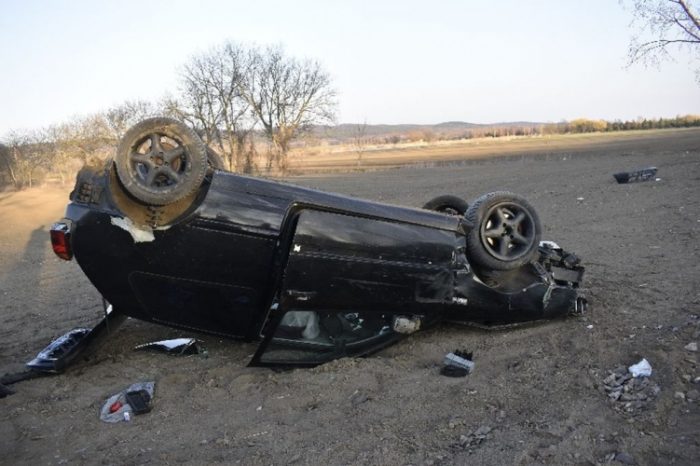 A karambol okozója a Volkswagen gépkocsival a füves útpadkára csúszott, majd a jármű a feje tetejére borulva állt meg.