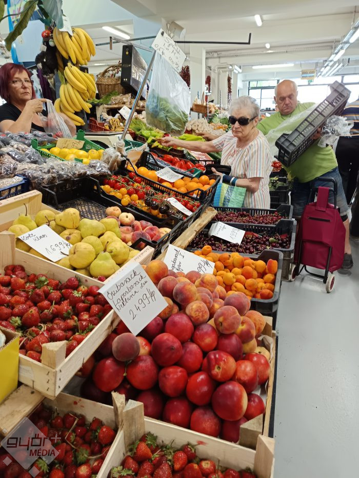 ”Tényleg dömping van most sok mindenből, meggy, cseresznye, sárgabarack, megjelent a sárgadinnye is, görögdinnyéből pedig nagyon várjuk a szabadföldi magyar dinnyét, ami hamarosan kapható lesz nálunk is, a jól megszokott medgyesegyházi dinnyét kínáljuk majd a csarnokba látogatóknak, mindeközben pedig zöldségből is dömping van, paprika, paradicsom, hagyma, kígyóuborka, salátafélék, felsorolni is nehéz, annyi mindenből lehet válogatni” – tette hozzá Kiss Józsefné Adrienn, koroncói zöldség-gyümölcskereskedő.