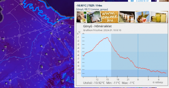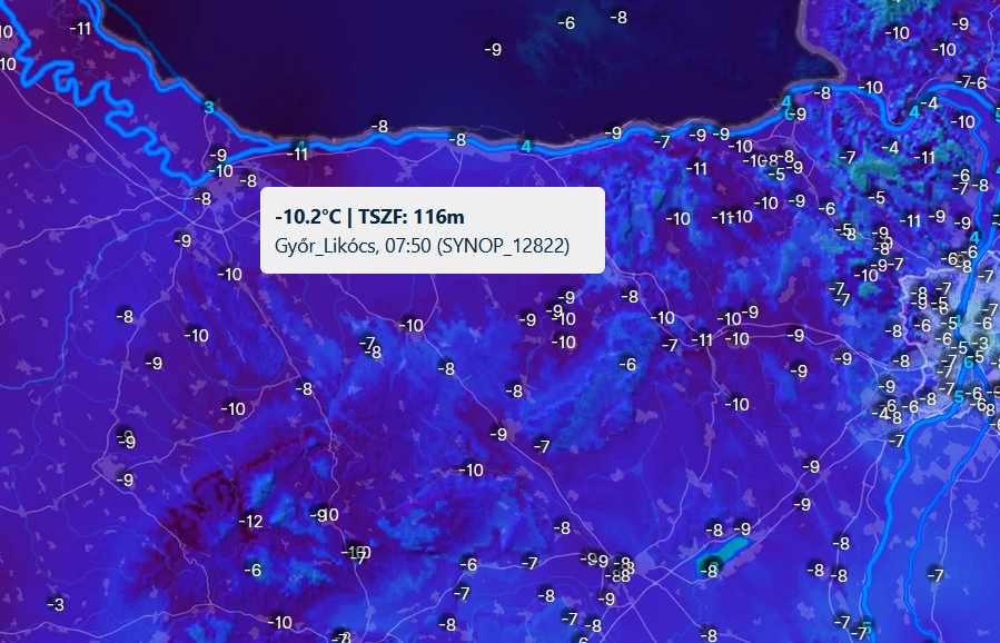 Kemény fagyok voltak az éjjel Győrben és környékén. Az Időkép legfrissebb hőtérképe szerint Likócson -10,2 fokra süllyedt a levegő hőmérséklete szerda hajnalban, de a város több pontján is mínusz 9 fokot mértek.