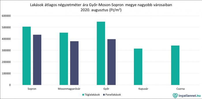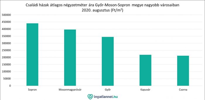 Jól látható, hogy jelentős különbségeket figyelhetünk meg az árak között, hiszen a hűség városában egy házat olyan drágán kínálnak, hogy annak árából Csornán két hasonló családi házat is megvásárolhatnánk.