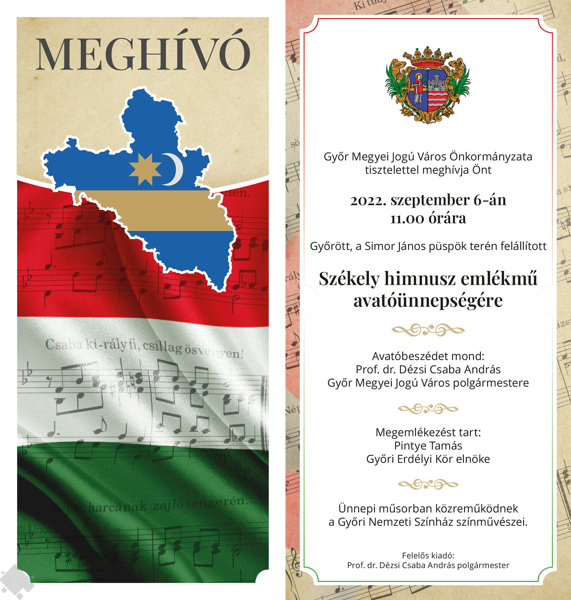 A Győri Erdélyi Kör kezdeményezésére már tavaly szerették volna méltón megünnepelni a himnusz századik születésnapját, de a járvány és egyéb tényezők miatt ez nem volt lehetséges. Pintye Tamás, a kör vezetője lapunknak elmondta az ő ötleteik alapján, a polgármester támogatásával született meg a döntés a szobor felállításáról. A székely himnusz kapcsán pedig arról beszélt, hogy a himnusz terjedéséért és kultuszáért sokat tettek a hazánkban működő erdélyi körök. „Az országos szövetségünk itt Győrben alakult meg 1991-ben. Emlékszem, a kezdeti években, 1989–90-ben még kissé félénken énekeltük, nem tudtuk, hogy az anyaországiak hogyan fogadják. Aztán pár év után már országszerte egyre jobban elterjedt. Mi pedig, győri erdélyiek, 1989 óta őrizzük a székely himnusz kultuszát, immár 33 éve. Nemzettörténetünk kiemelkedő részét képezi, annyi hányattatás, küzdelem, a leszakított-elszakított – akár tömbben, akár szórványban élő – magyarság integrálása, nemzeti kormányunk több évtizednyi erőfeszítésének köszönhetően. Ma már a világ minden sarkában felhangzik a magyar himnusz után a székely himnusz is” – fogalmazott Pintye Tamás.
