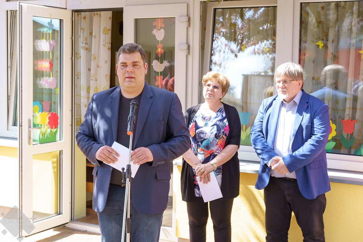 Dr. Pergel Elza, alpolgármester pedig arról szólt, hogy az 1977-ben átadott bölcsődének már szükséges volt a megújítása, energetikai felújítása. A beruházás összege mintegy negyedmilliárd forint, melyből 230 milliót a magyar állam biztosított. „Ahhoz, hogy ne csak kívül legyen szép, energiatakarékos, hanem belülről is megújuljon az épület, az önkormányzat biztosította a szükséges forrást.” – hangsúlyozta az alpolgármester.