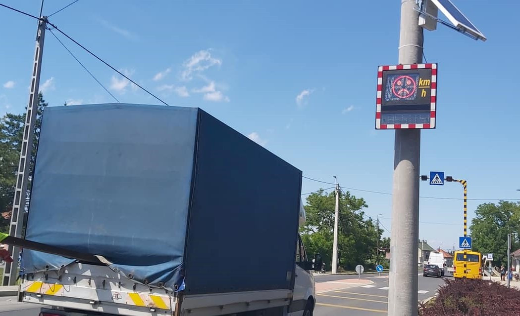 „Látványos sebességjelző berendezést helyeztünk ki Ménfőcsanakra a Győri út – Kisdobos utca csomópontnál lévő gyalogátkelőhelyhez![]()