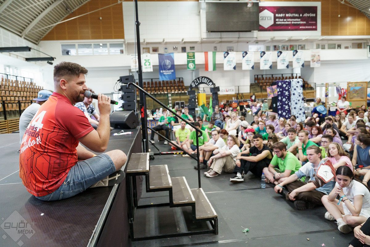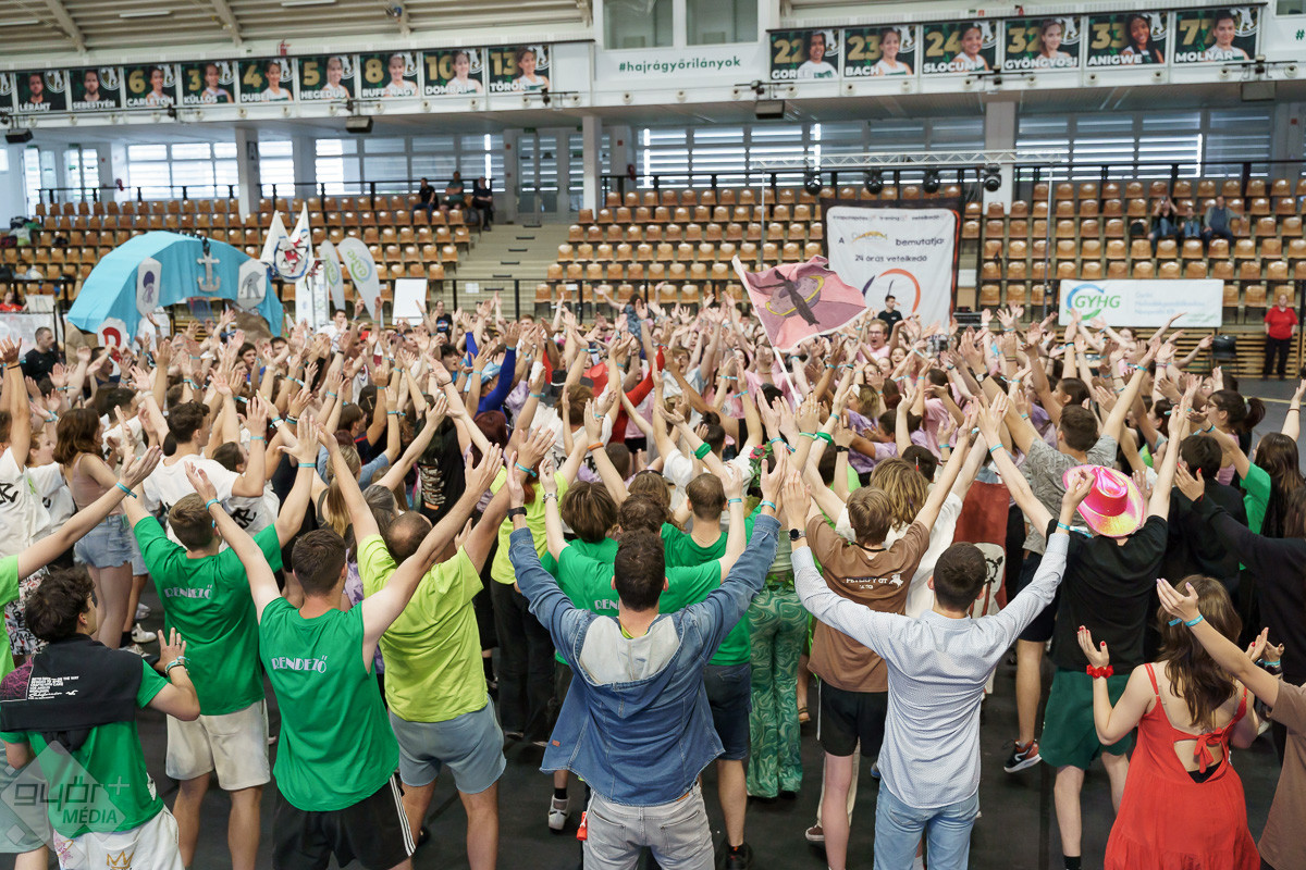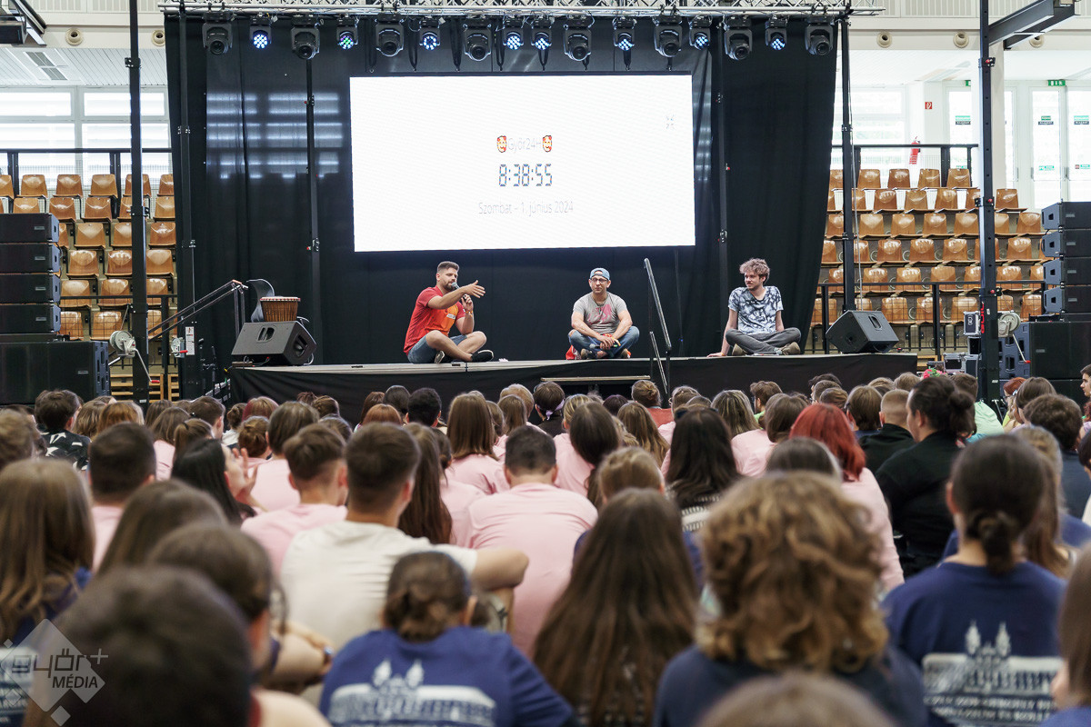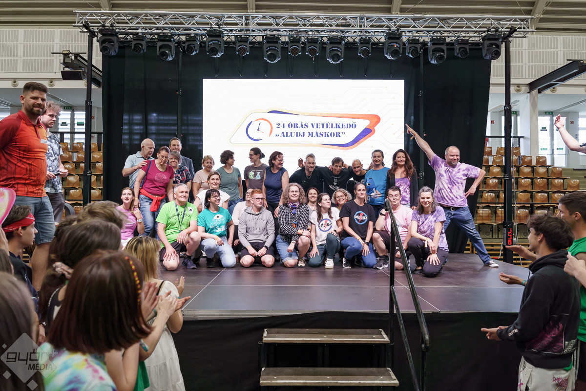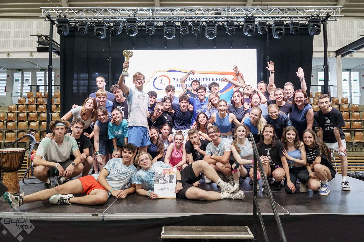 Véget ért a huszonnégy órás, „Aludj máskor!” című vetélkedő, melyet az Egyetemi Csarnokban tartottak péntek délelőtt 9 órától. A középiskolások remek hangulatban töltötték az időt, vitézül állták a sarat, kitartottak és minden feladatot teljesítettek.