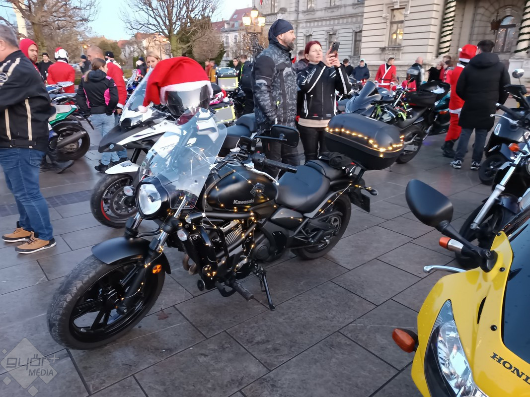 A motoros mikulások ma több helyszínen, így a városházánál is jártak. Erről Havassy Anna Katalin kolléganőnk küldött fotókat: