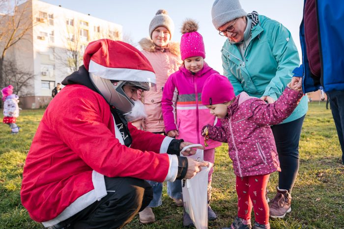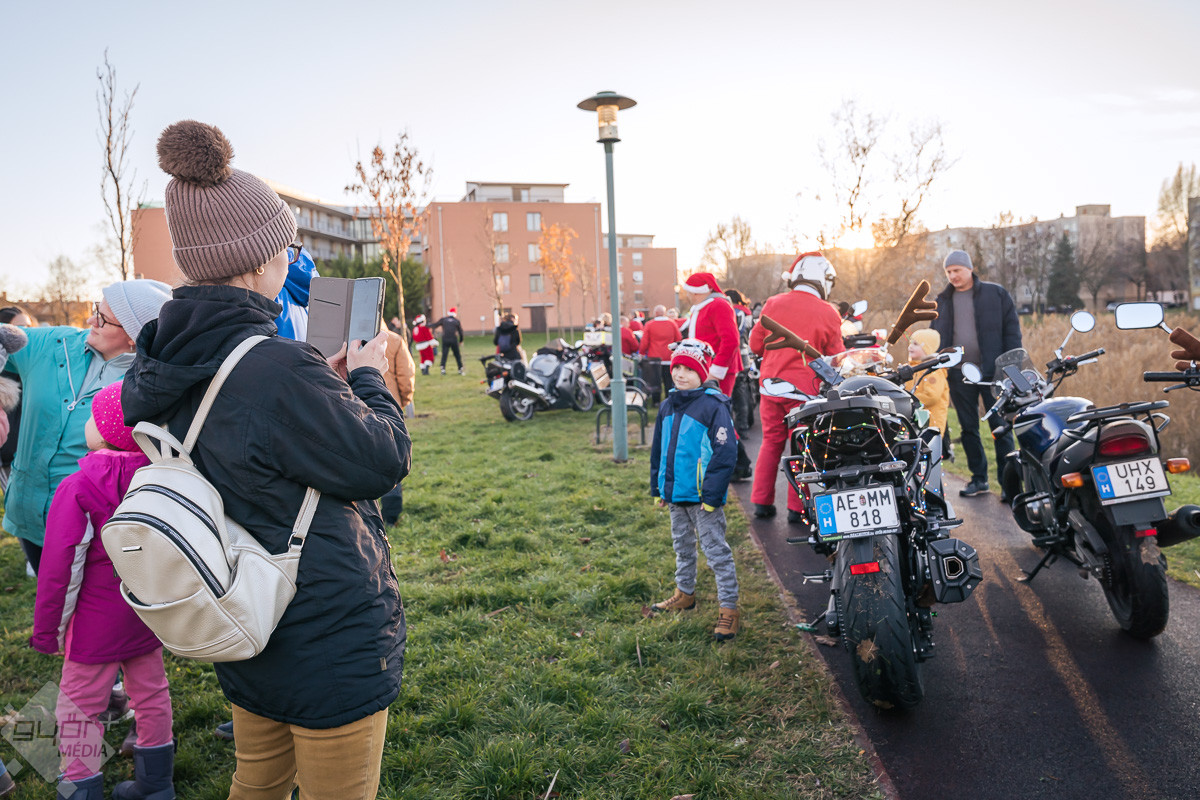 „2019 óta szervezzük meg a decemberi motoros mikulás rendezvényünket, amelyet az idei évben már egy húsvéti motoros locsolkodással is kiegészítettünk. Ezúttal is gyerekeken és hátrányos helyzetű családokon igyekszünk segíteni. A mai eseményen is megvásárolhatók azok a támogatói matricák, amelyekkel egy olyan töltéstavai nagymamát segítünk, aki a négy unokáját neveli. Az összegyűlt pénzbeni adomány mellett tartós élelmiszereket is viszünk számukra, amelyeket már a mai napon átadunk, hogy ezzel is szebbé tegyük számukra az ünnepvárást és a karácsonyt” – mondta el Csörnyei Balázs.