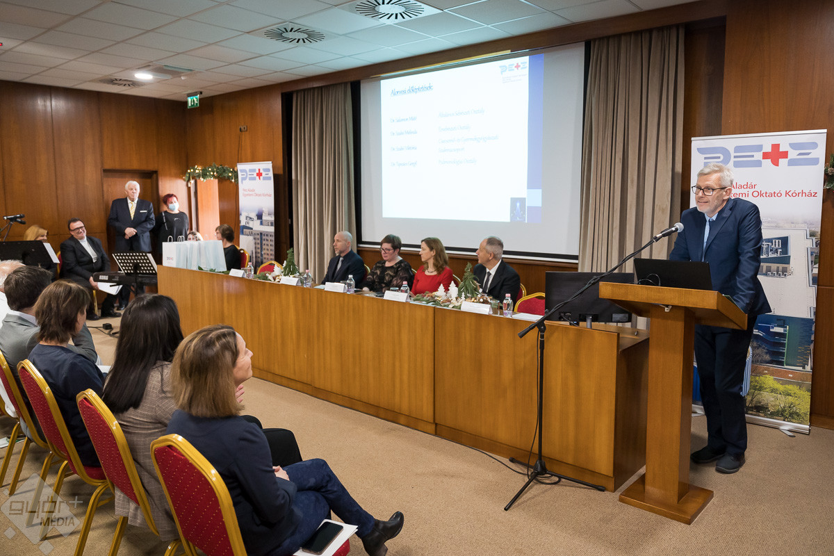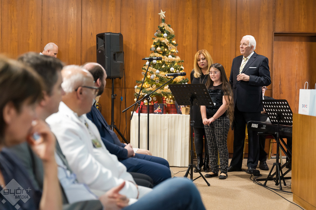 Karácsonyi műsor keretében köszöntötte munkatársait a Petz Aladár Egyetemi Oktató Kórház vezetősége. A Győri Nemzeti Színház zenés-énekes összeállításában közreműködött Lázin Beatrix, Krasznai Tamás, Kertes Anna, Medveczky Szabolcs és Medveczky Noémi.