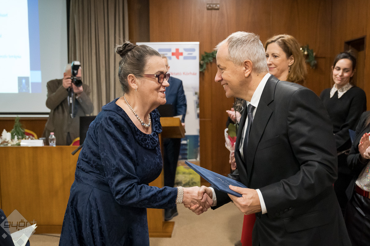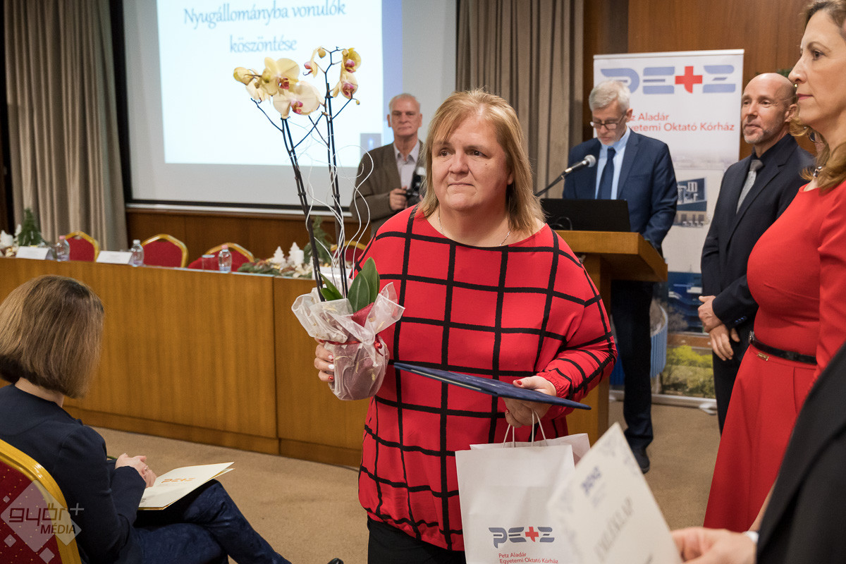 Végül több évtizedes kiemelkedő szakmai munkájukat elismerve búcsúztatták a nyugdíjba vonuló orvos, szakdolgozó és műszaki munkatársakat, köztük dr. Alföldi Ibolya pszichiáter főorvost, dr. Faa Gyöngyvér foglalkozás-egészségügyi szakorvost, dr. Molnár Sándor tüdőgyógyász főorvost, dr. Grégerné dr. Varga Ágnes szakgyógyszerészt, Bacskó Gáborné ápolót, Beledi Márta, Borsosné Herceg Julianna, Borsó László Tamásné diplomás ápolókat, Lendvai Erzsébet szakápolót és Molnár Károlyné ápolót.