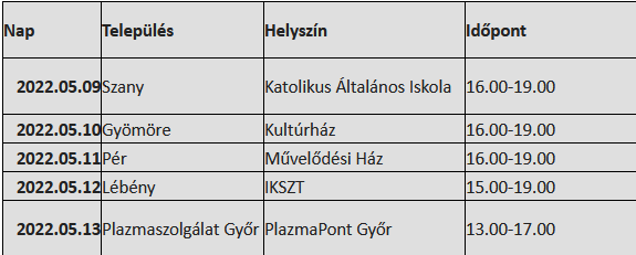 Az alábbiakban közöljük a győri Regionális Vérellátó Központ és a Magyar Vöröskereszt hozzánk tartozó területi szervezeteinek jövő heti programját.