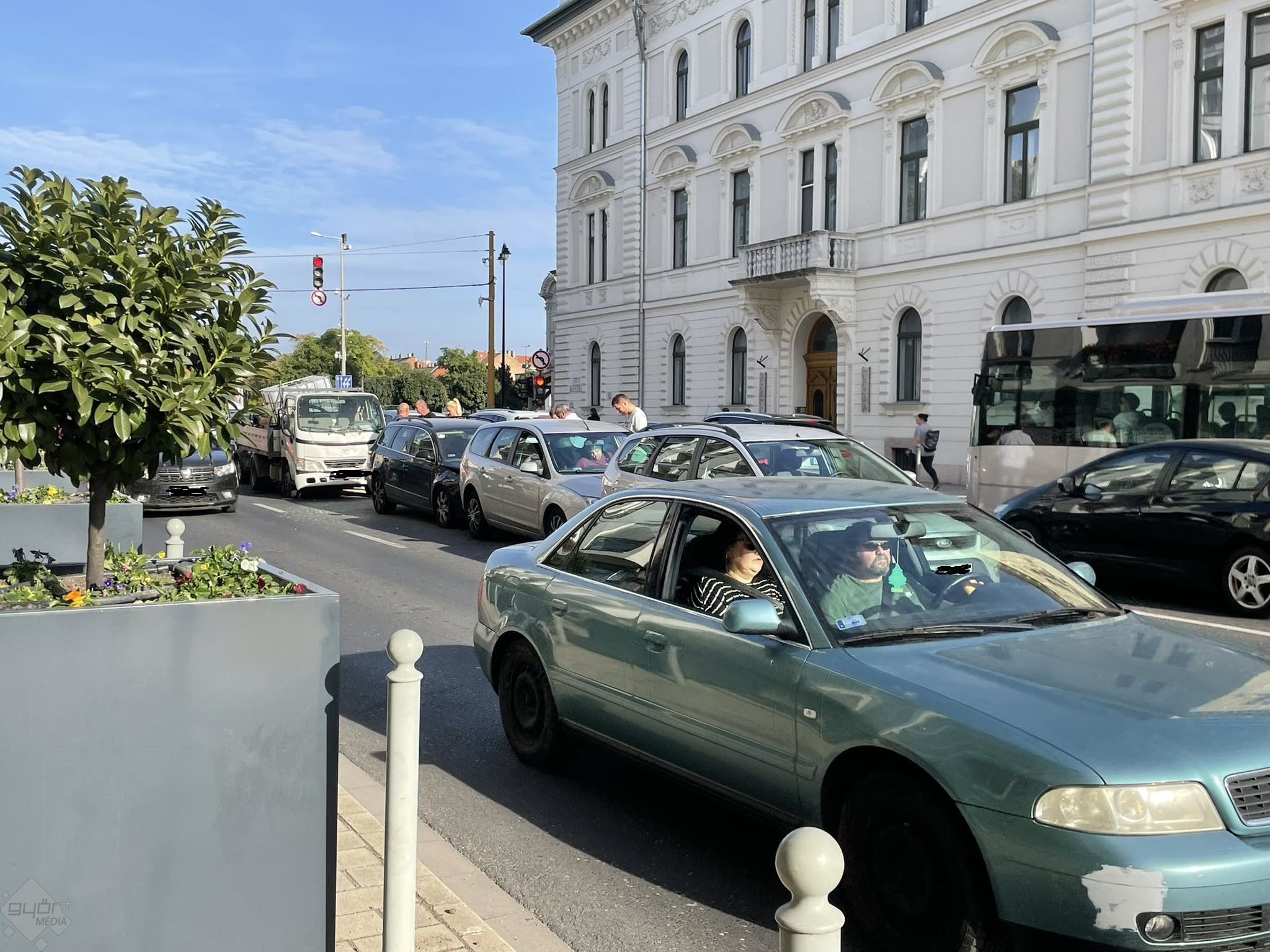 Négy autó karambolozott Győr belvárosában, a Szent István úton, az Aradi vértanúk útja kereszteződés közelében.