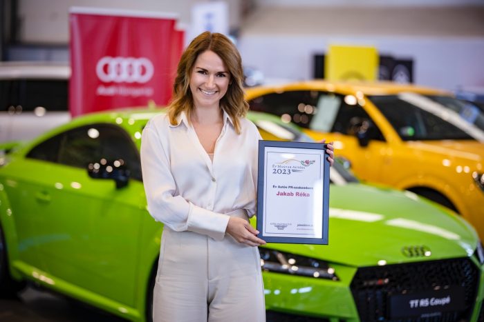 Az Év Magyar Autója versenyben a zsűri minden évben kiválasztja azt a PR-szakembert, aki egész éves szakmai tevékenységével kimagaslik a mezőnyből, illetve a versenyben nevező importőr, márka, autógyártó képviseletében a leginkább segíti a zsűri munkáját. A szakmai testület egyhangúlag neki ítélte oda az Év Autós PR-szakembere 2023 díjat. Ezen szakmai visszaigazolás pedig sokat jelent Jakab Rékának: „Őszintén szólva nem számítottam az elismerésre. Igyekszem mindig a tőlem telhető legjobban végezni a munkámat, és ha ezt elismerik, ráadásul egy országos szakmai díjjal, akkor az valóban nagyon jó érzéssel tölti el az embert.”