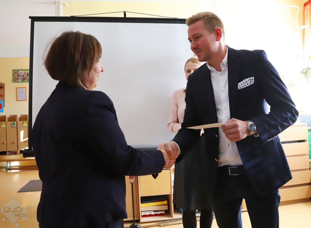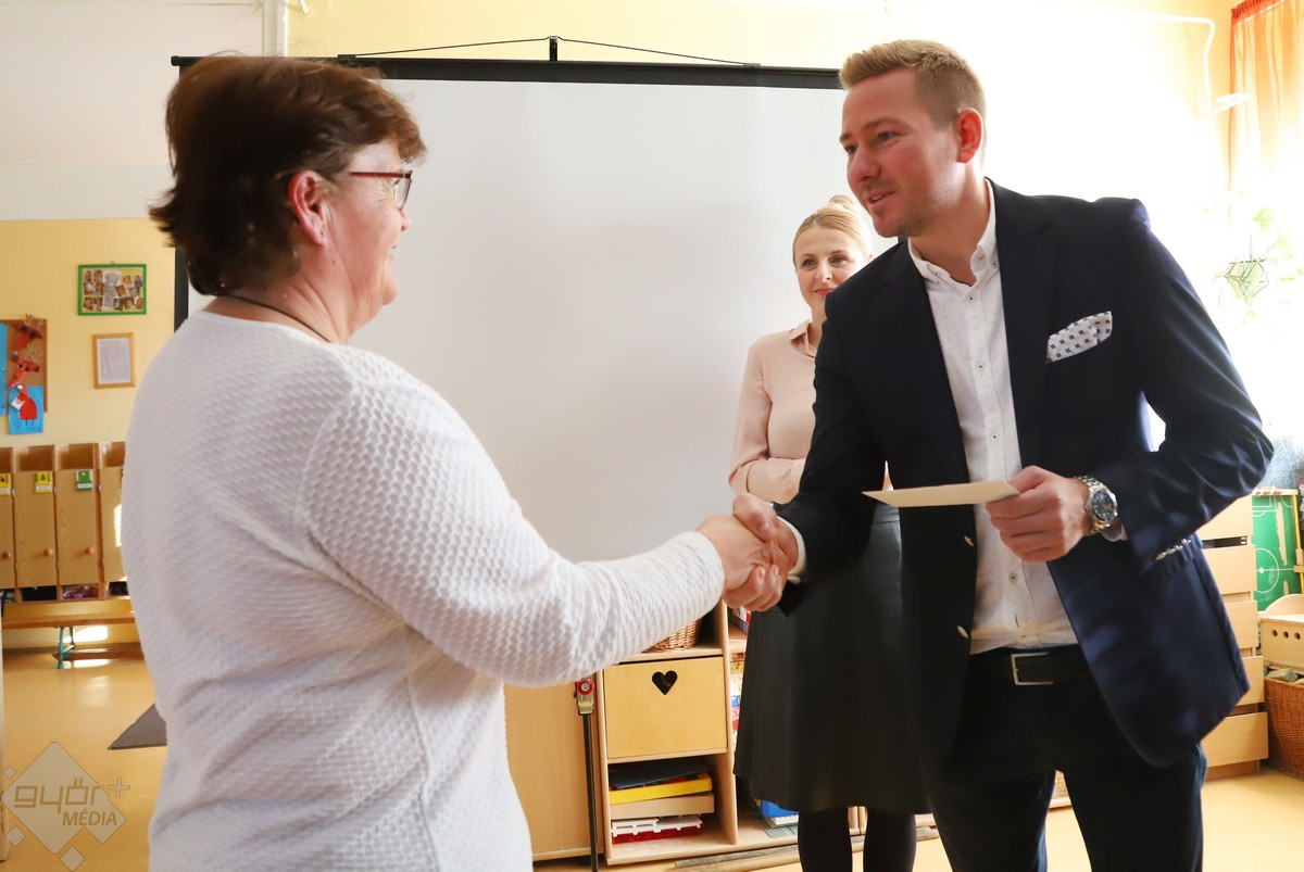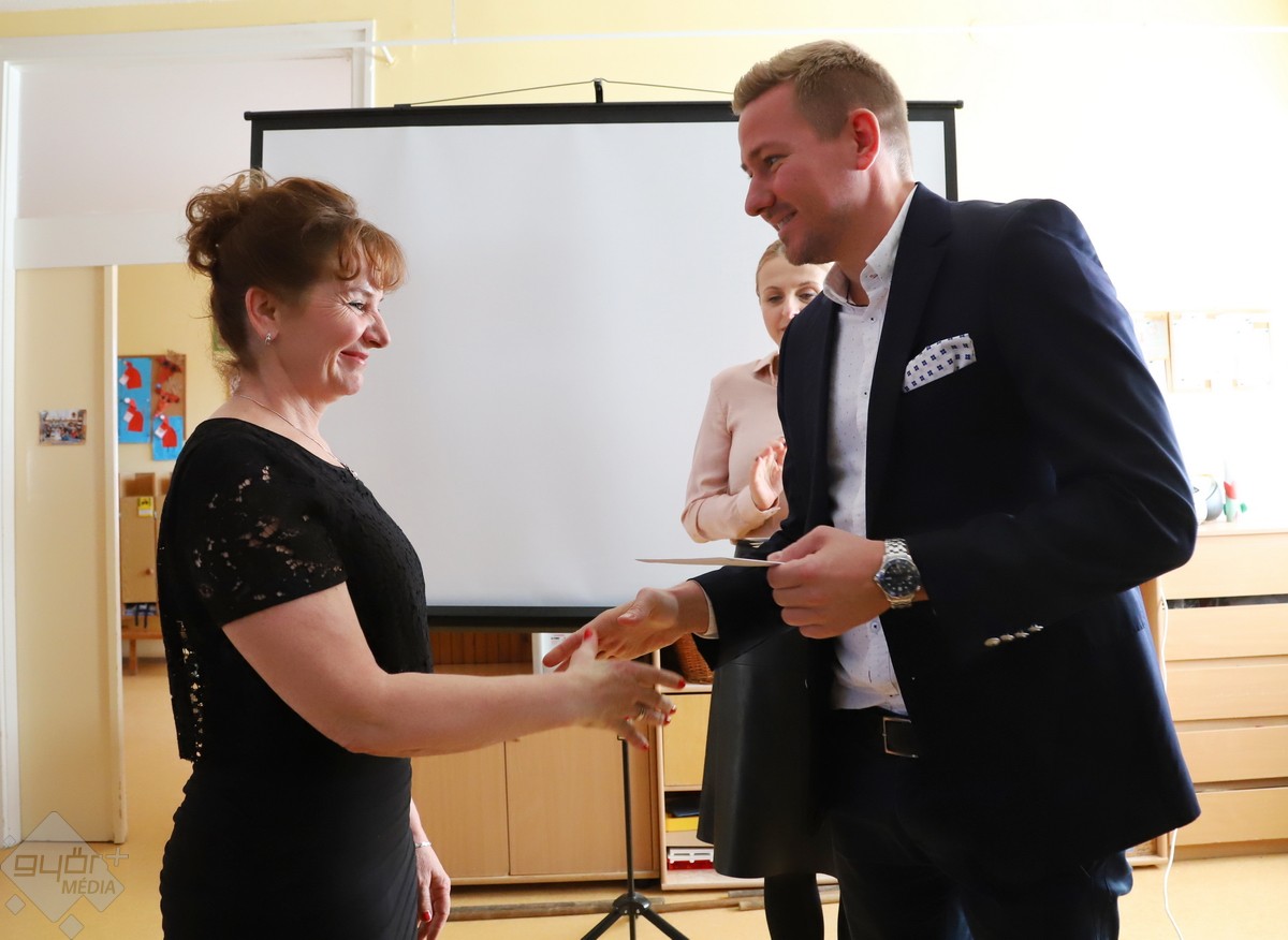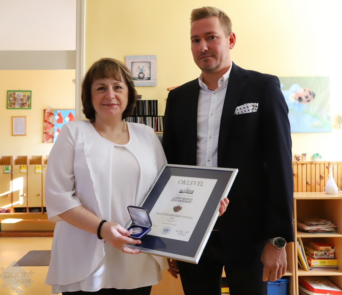 Az alpolgármester a jubileum alkalmából a Városháza ezüst emlékérmét adta át az intézménynek, amelyet Csuti Zoltán Csabáné tagóvoda vezető vett át.