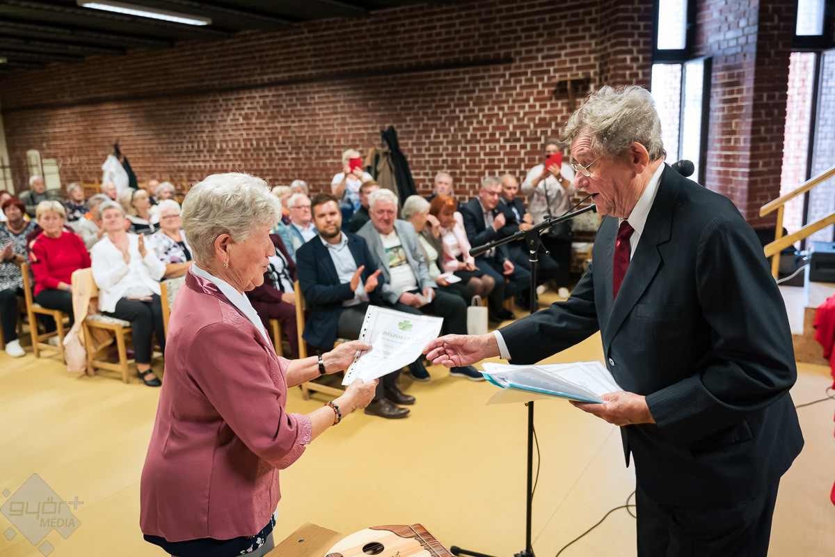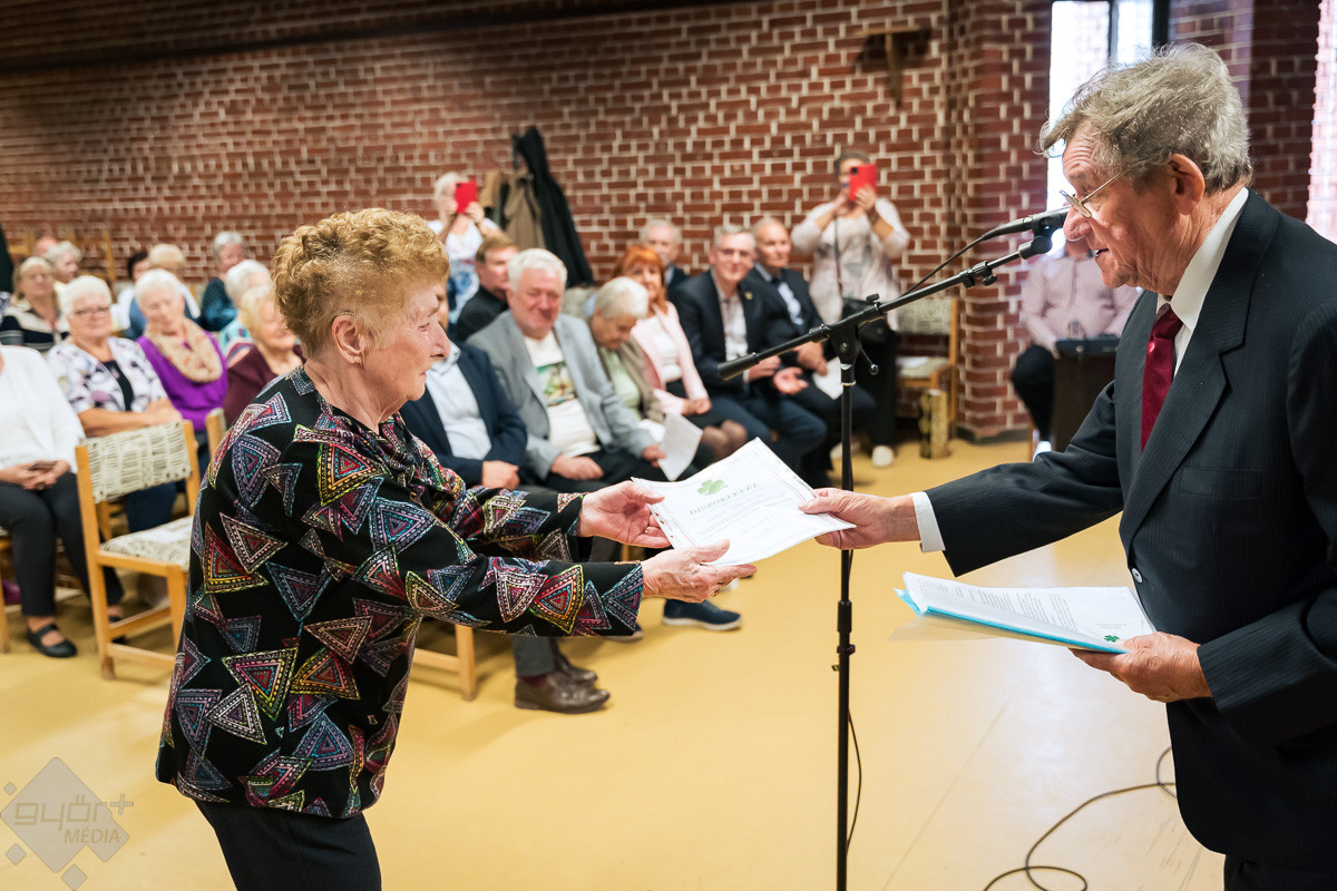 Gratulált az ünnepelteknek Vas Lászlóné, a Pannon Nyugdíjas Egyesület elnöke és Lazur Tibor, a RÁBA Nyugdíjas Egyesület vezetője is.