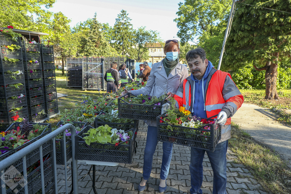 „A járványhelyzet okozta bezártságban felértékelődött a kertészkedés szerepe, hiszen ha szép, rendezett a környezetünk, ha valami szépet hozunk létre, az a lelkünknek is jót tesz.” – fogalmazott Dr. Dézsi Csaba András, aki maga is kivette a részét a virágok kiosztásából.