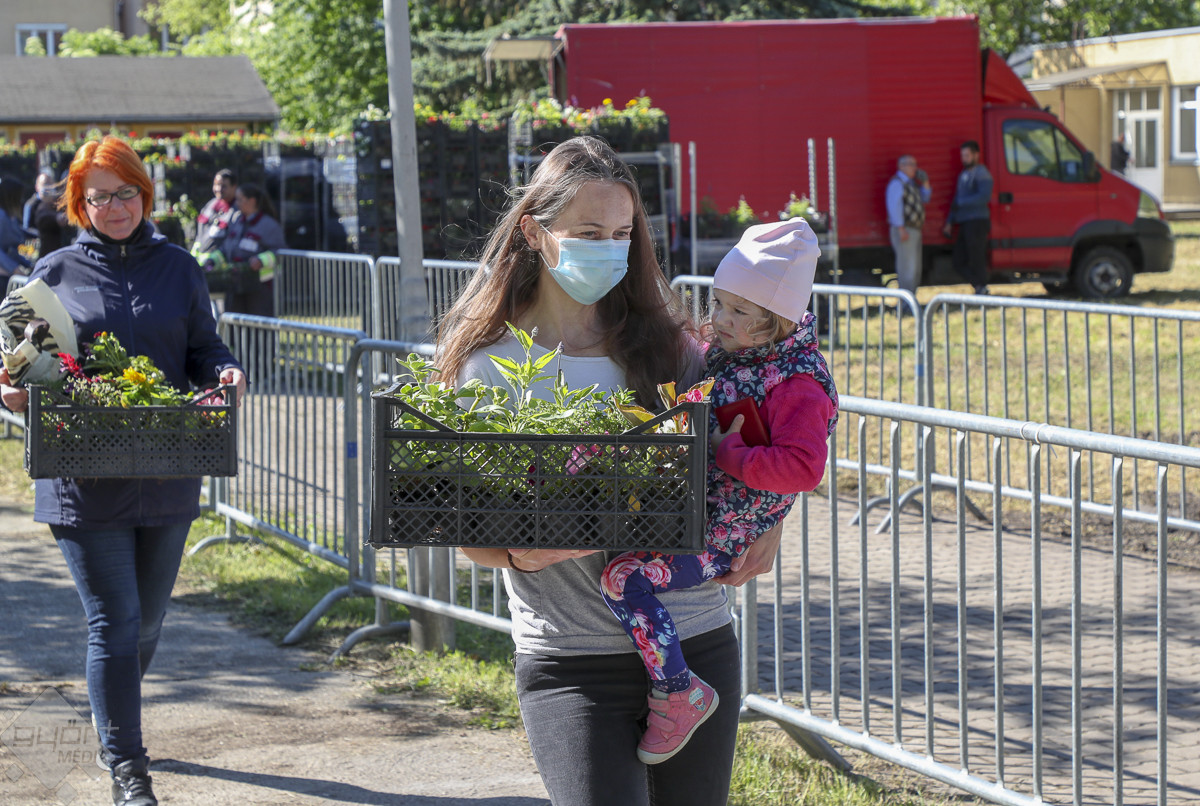 Rekordot döntött az idén az igénylők száma, hiszen mintegy kétezren jelentkeztek a virágosztásra. Az önkormányzat fejenként húsz palántát biztosított, az új helyszínen gördülékenyen ment a kiosztás is…