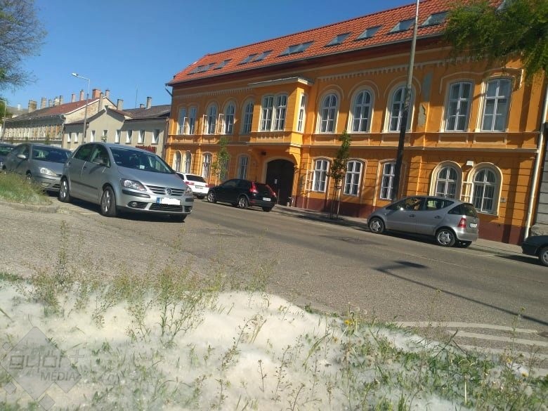 Felvételünkön természetesen nem egy áprilisi futó hózápor nyomai láthatók, hanem a nyárfa virágának pihéje burjánzik éppen a Zechmeister utcánál, a győri Rába-parton.