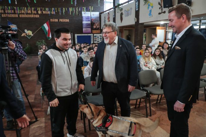Fóris Norbert látássérült egyetemista sportolóval egy különleges beszélgetésen ismerkedhettek meg a Móra Ferenc Általános Iskola diákjai. A korosztályos Európa-bajnok judóst rendhagyó módon Dr. Dézsi Csaba András, Győr polgármestere faggatta hétköznapjairól.