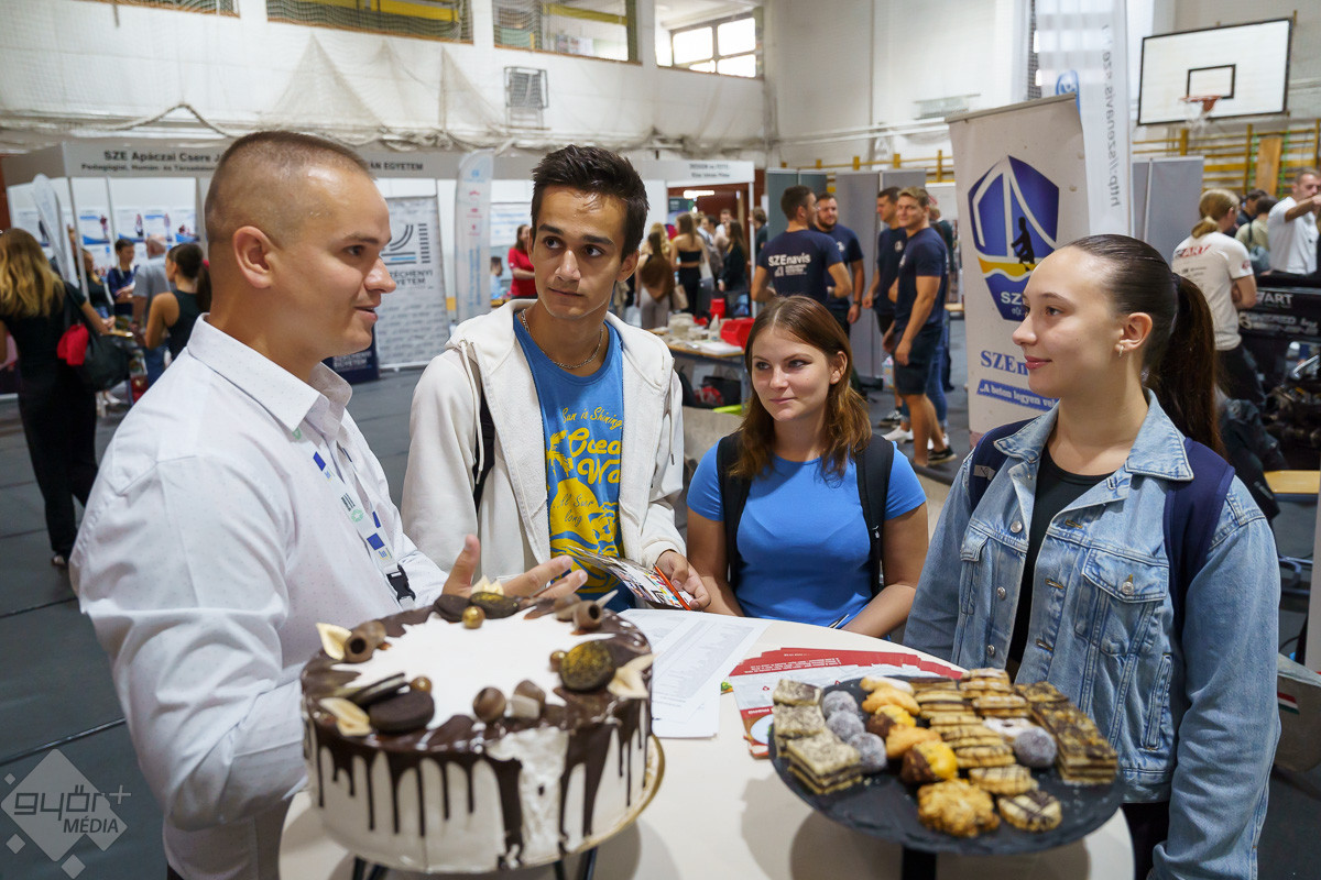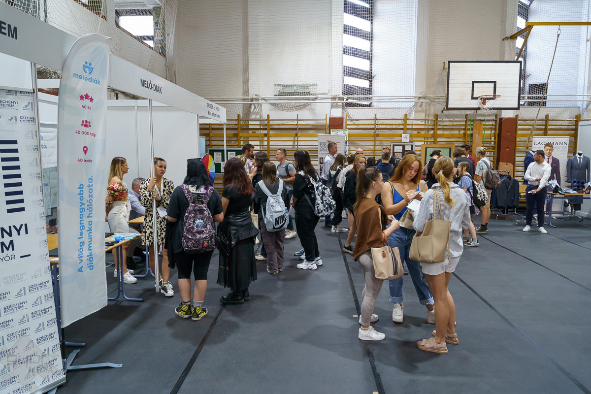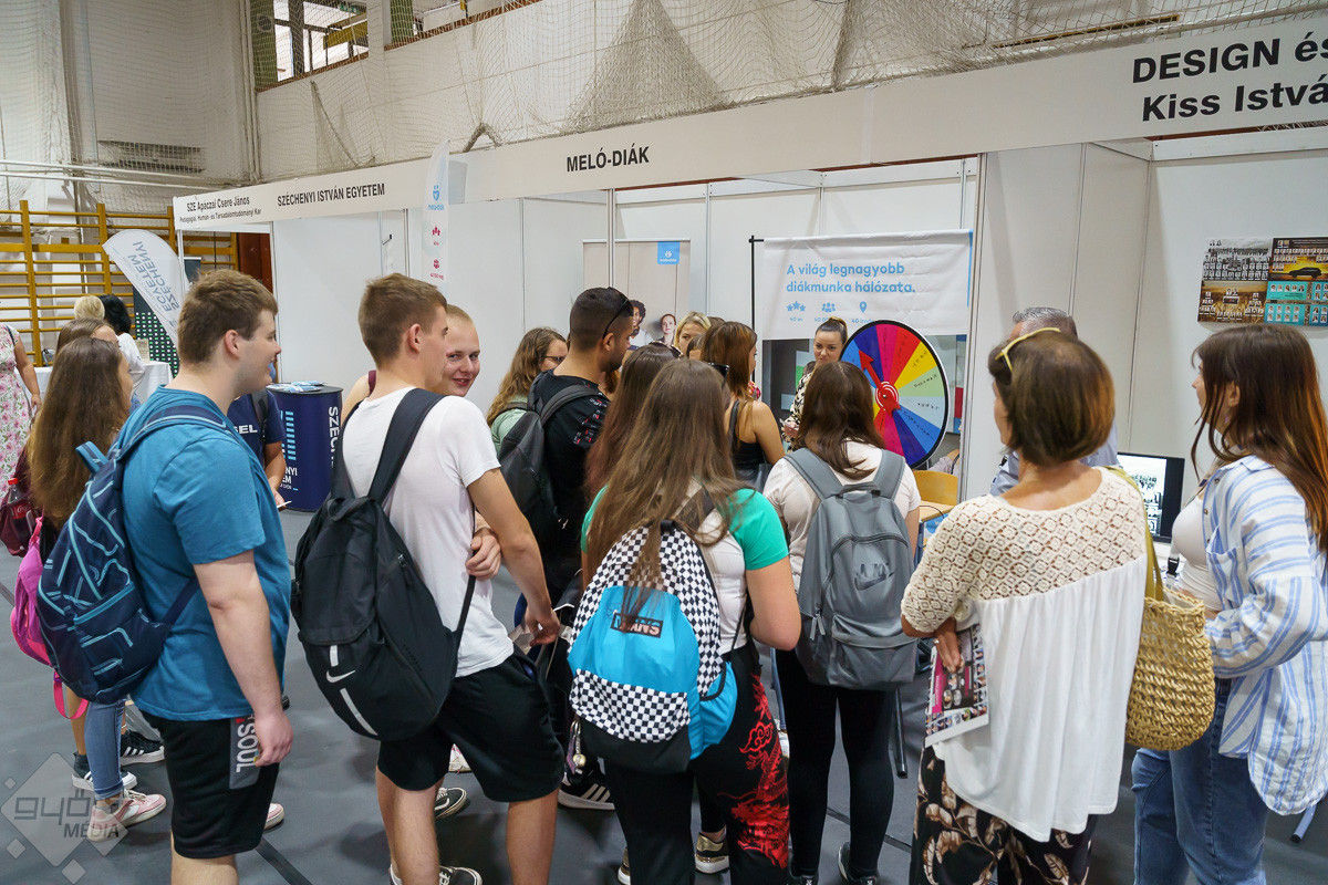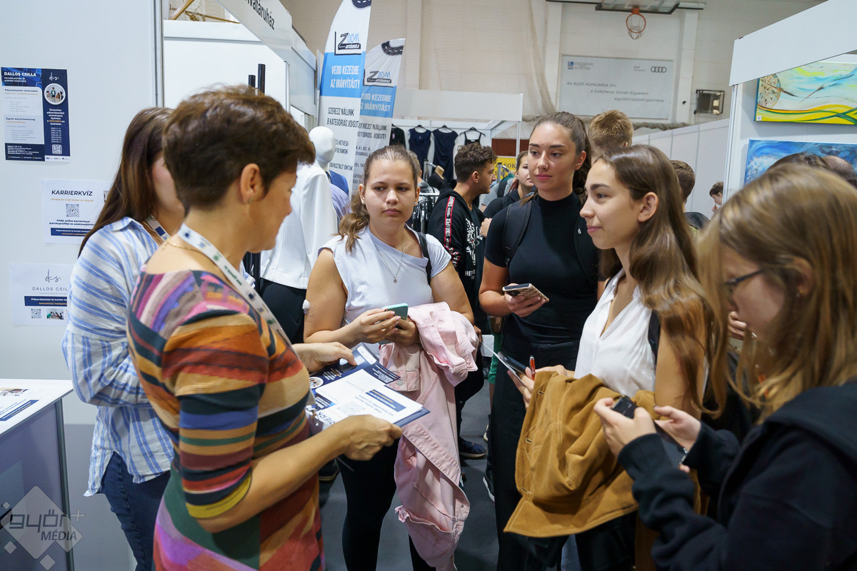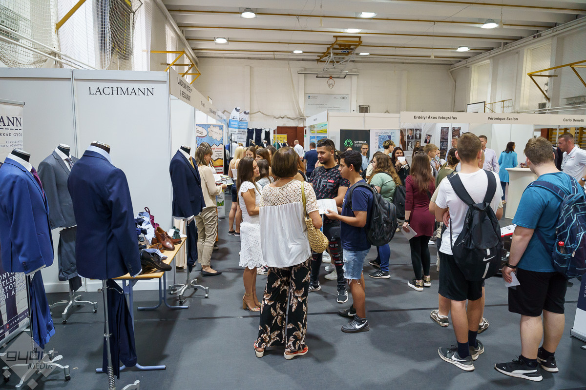 Érdeklődő diákokkal telt meg kedden a Széchenyi István Egyetem Apáczai karának tornacsarnoka, ahol az idei Ballagási kiállítást rendezi a Győr-Moson-Sopron Vármegyei Kereskedelmi és Iparkamara kereskedelmi tagozata.