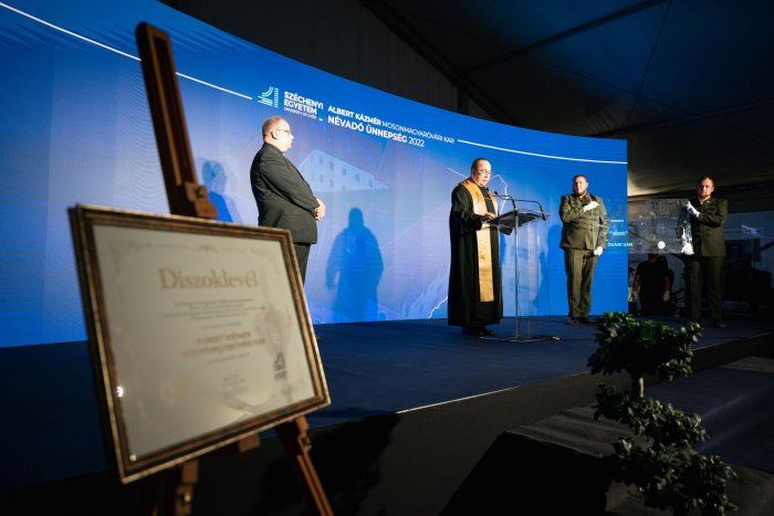 Az ünnepségen Sárai-Szabó Kelemen, a győri Szent Mór Bencés perjelség perjele, a Széchenyi István Egyetemért Alapítvány kuratóriumi tagja és Zsódi Viktor, a mosonmagyaróvári Piarista Gimnázium, Általános Iskola és Óvoda igazgatója áldotta meg a kar új névtábláját, amelyet felhelyeztek a vár falára, dr. Knáb Erzsébet kuratóriumi elnök pedig átadta a kar új nevéről szóló díszoklevelet dr. Filep Bálintnak és dr. Szalka Évának.